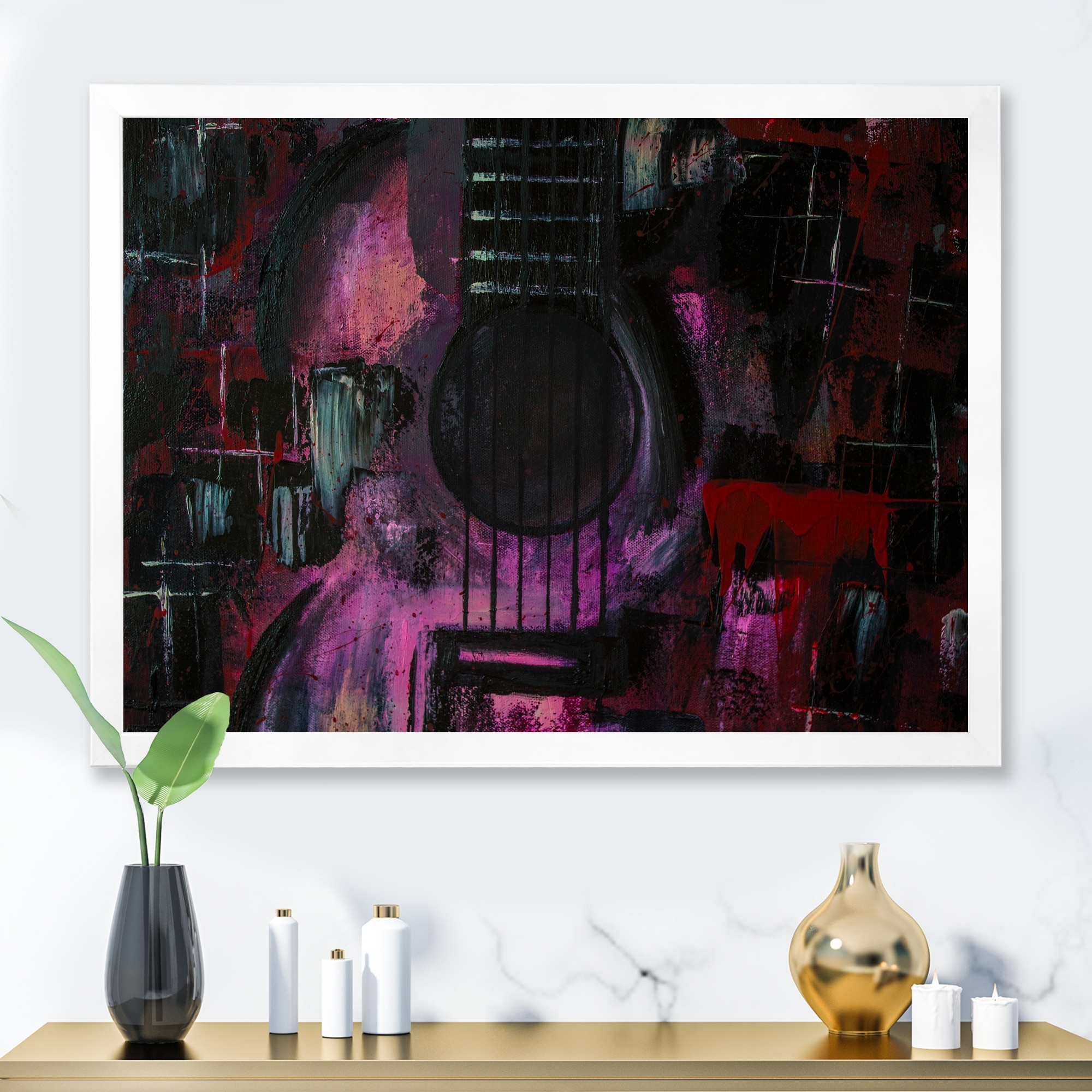 Designart "Purple Music Guitar Ii" Modern Framed Art Print
