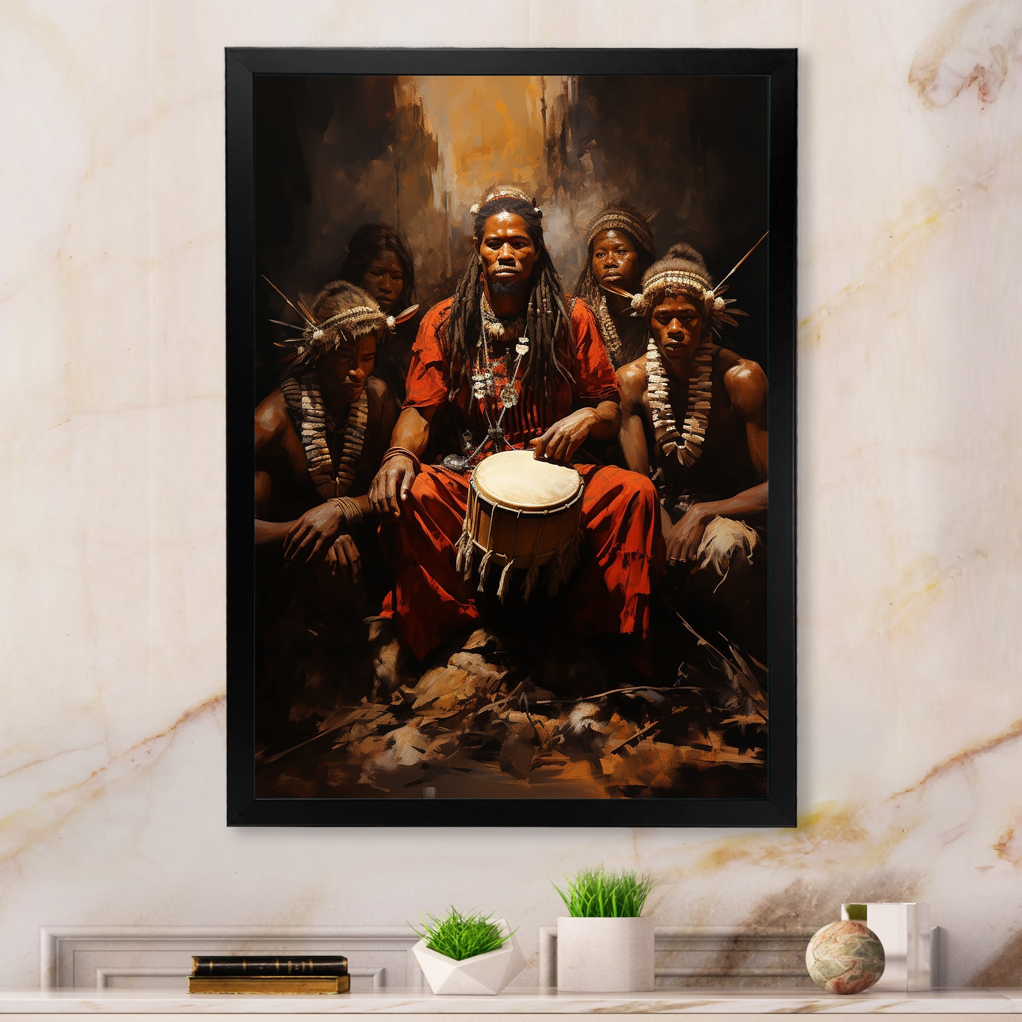Designart "Music Tribal Drummers Earthy" Music Framed Canvas Art Print