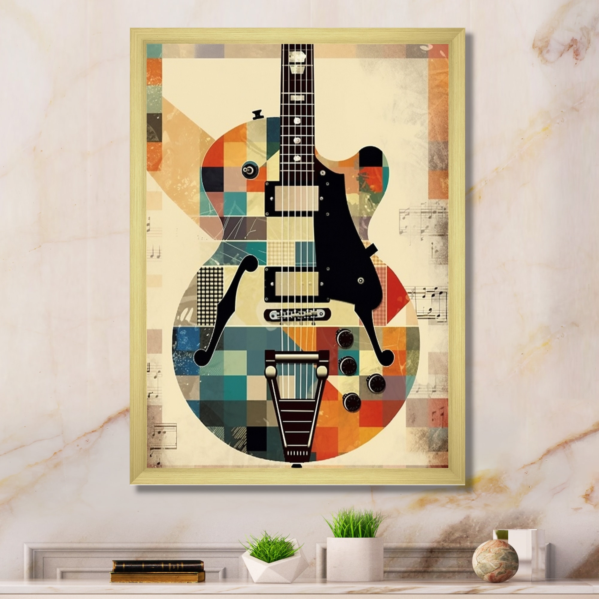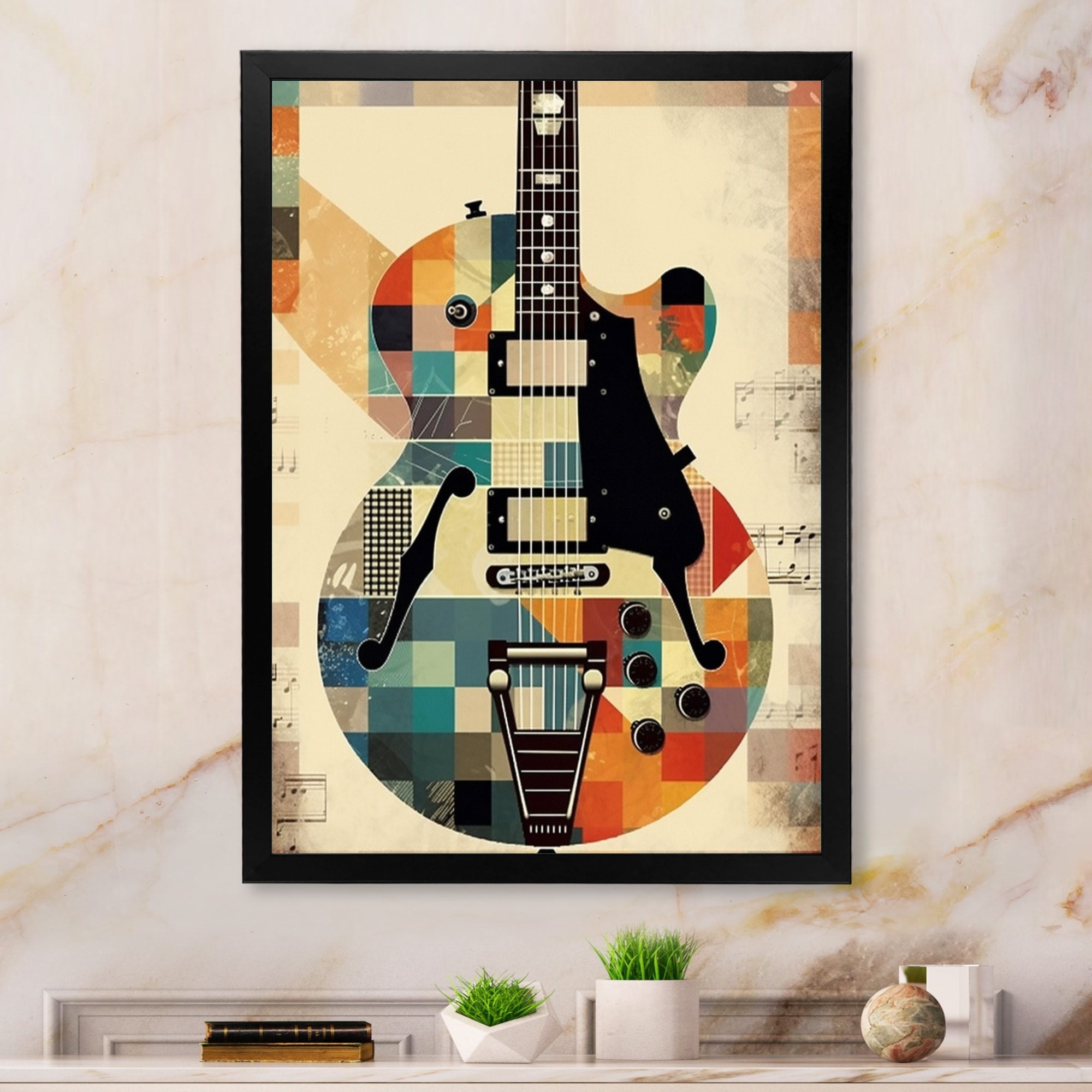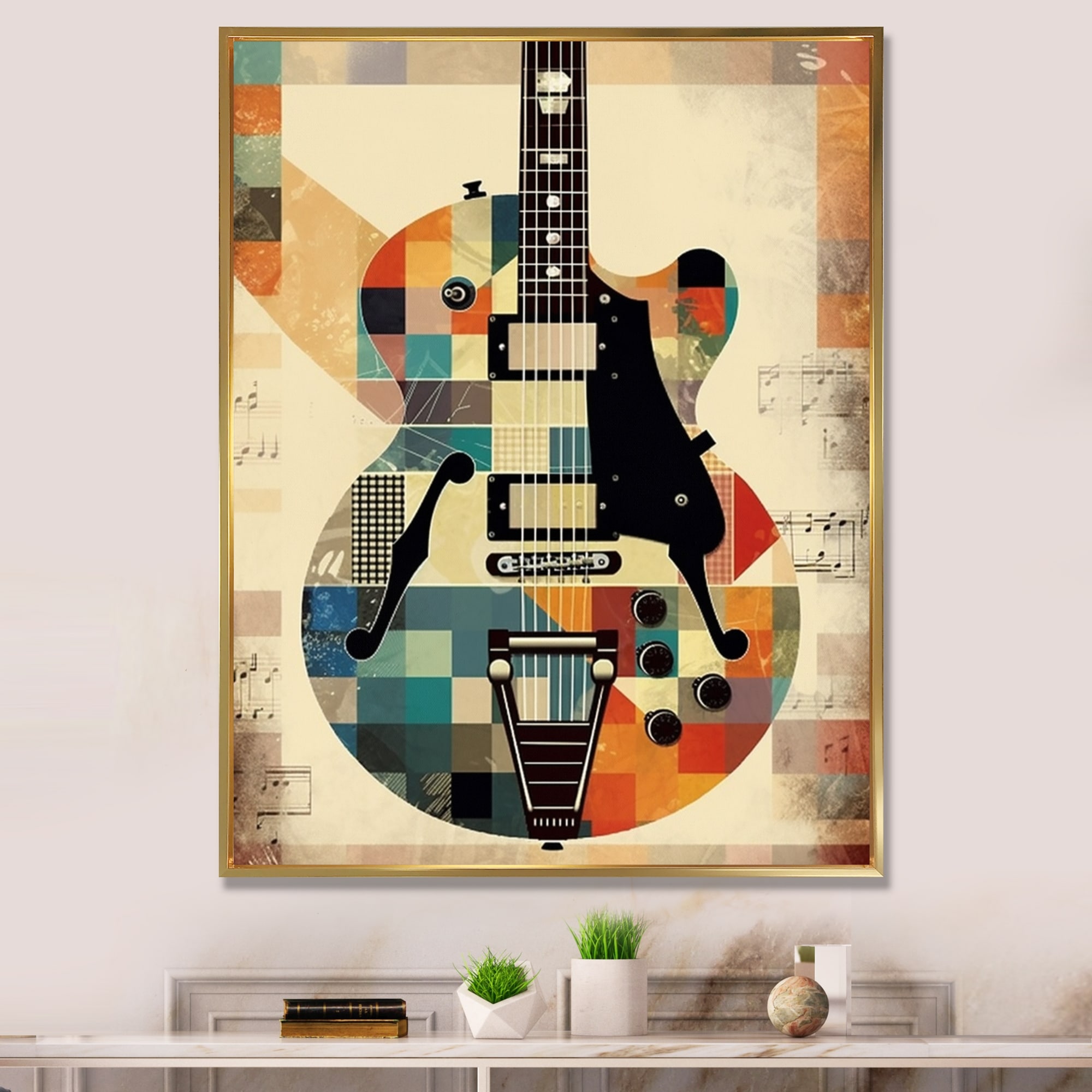 Designart "Cubism Guitar" Music Framed Canvas Wall Art