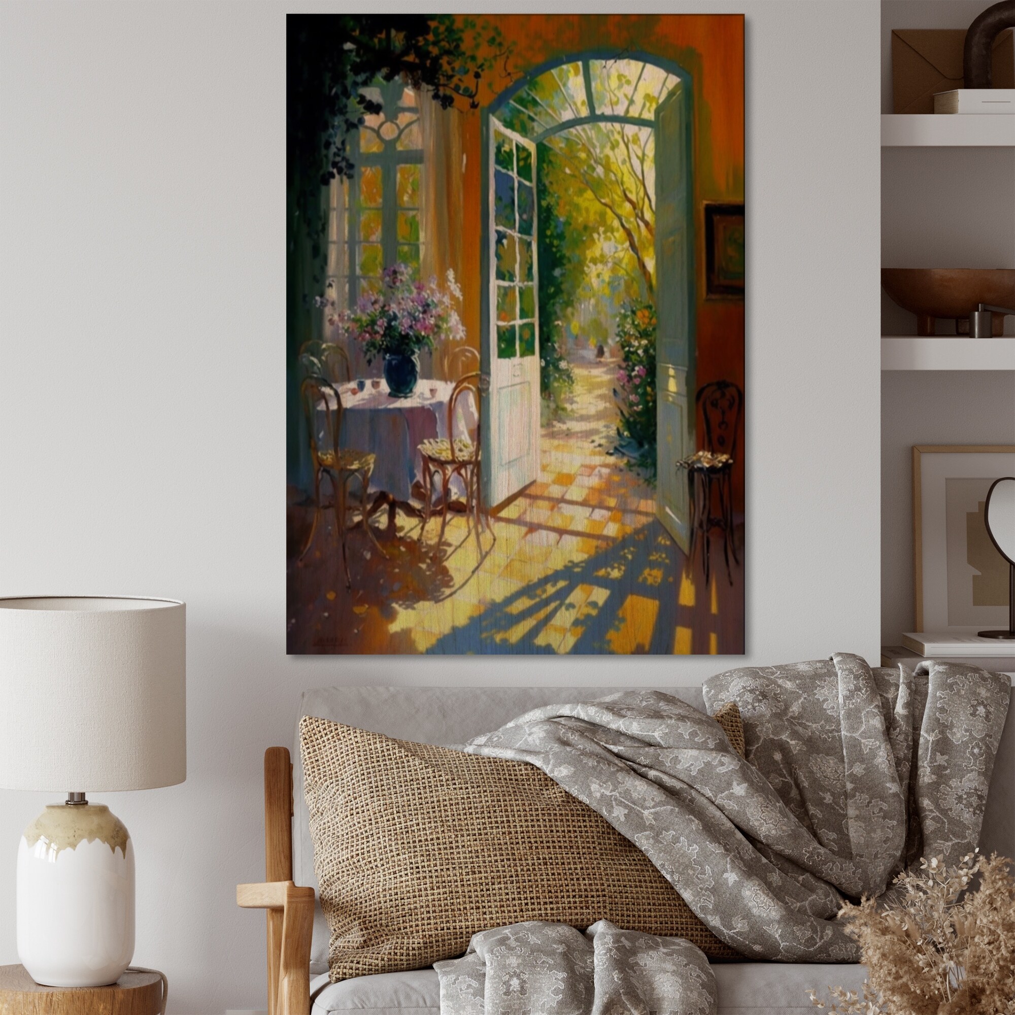 Designart 'Afternoon Sunshine in the Lakehouse II' Lake House Cottage Wood Wall Art - Natural Pine Wood