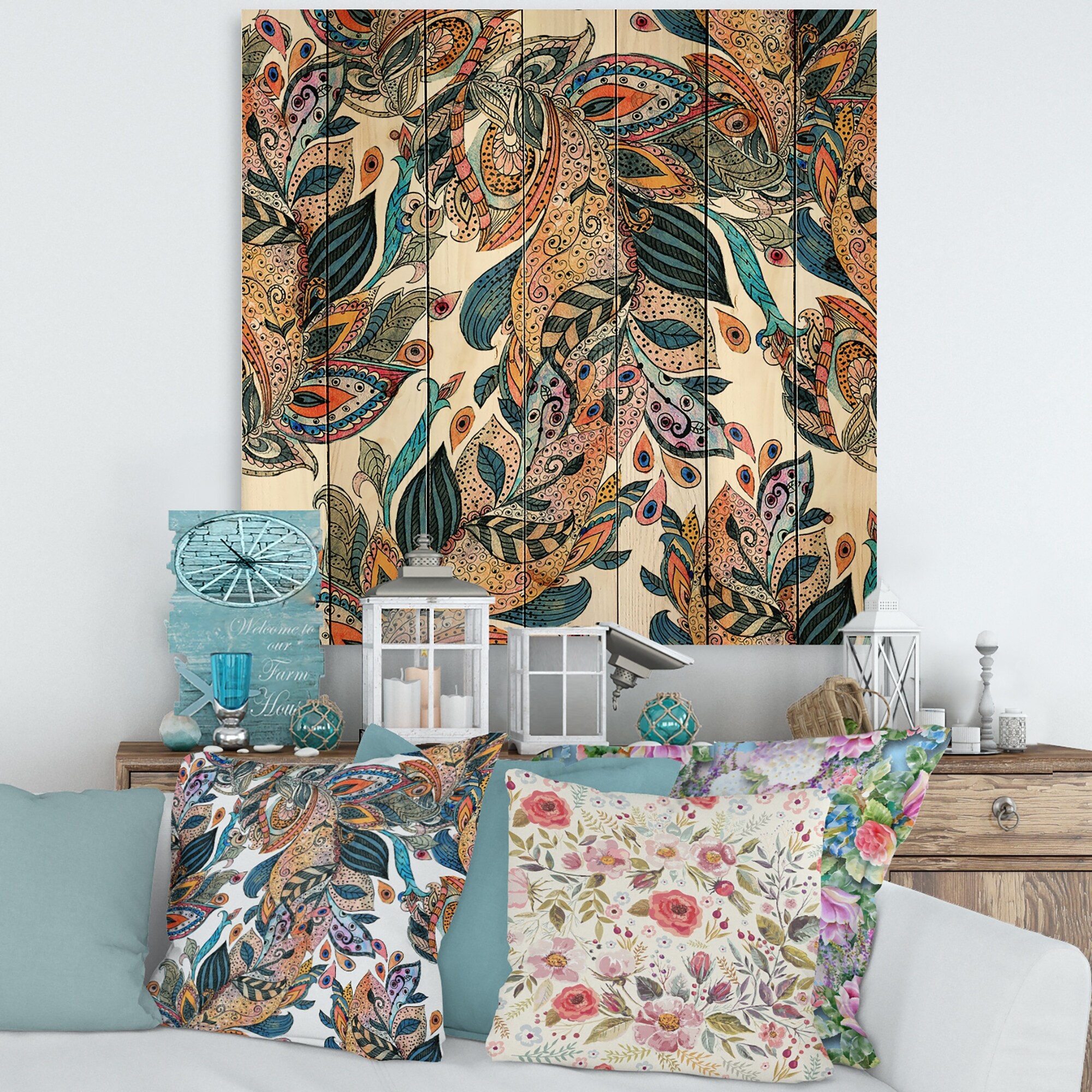 Designart 'Floral Seamless Abstract Texture' Traditional Print on Natural Pine Wood