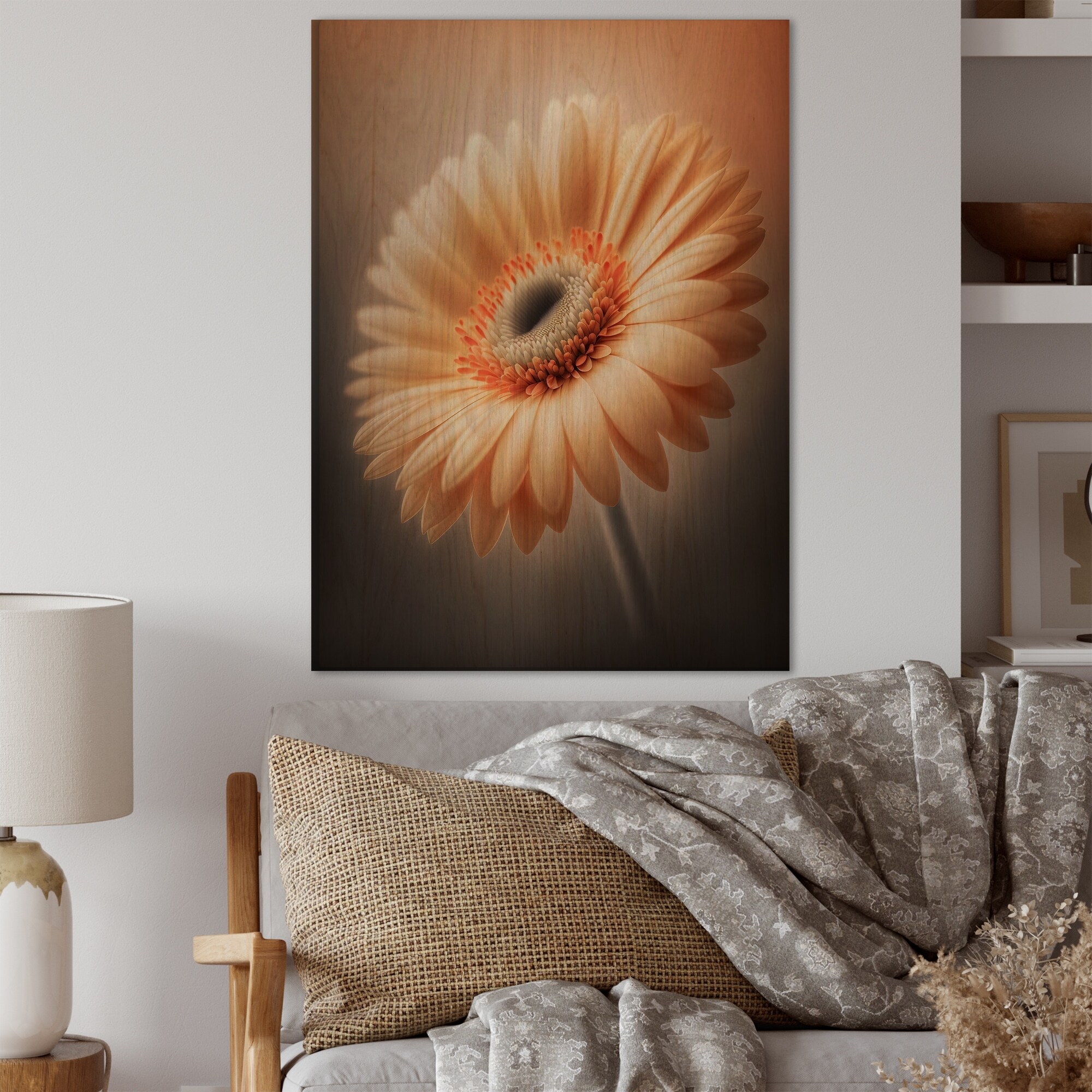 Designart 'Orange Gerbera Flower II' Floral Daisy Wood Wall Art - Natural Pine Wood