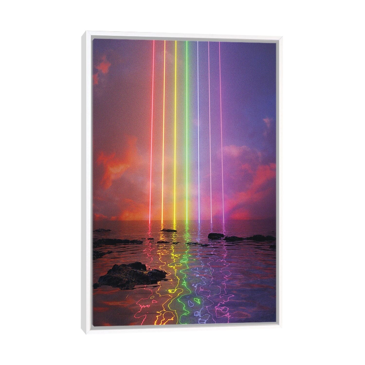iCanvas "Neon Rainbow" by Davansh Atry Framed|White - 26x18