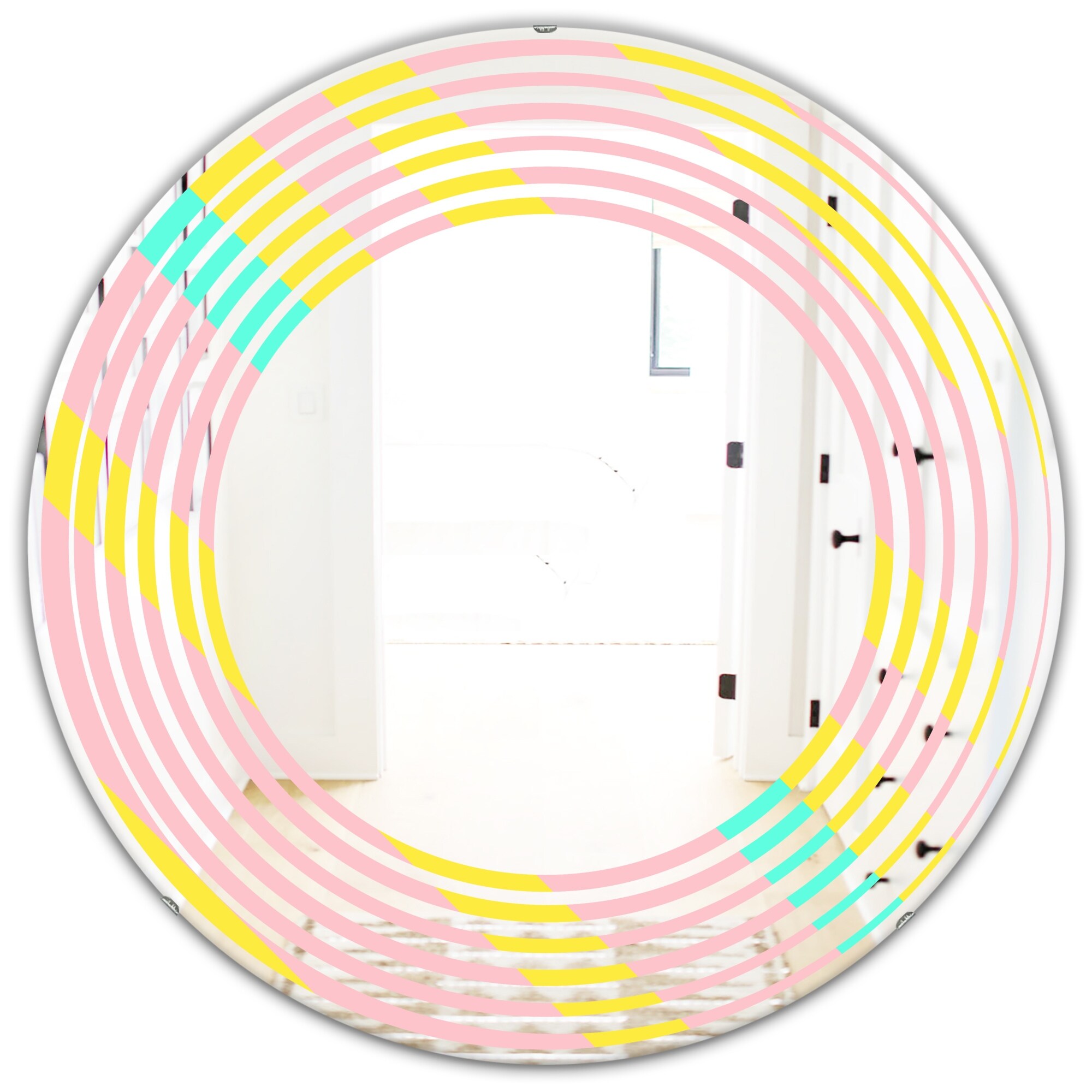 Designart 'Memphis Retro Neon Pattern' Printed Modern Round or Oval Wall Mirror - Wave