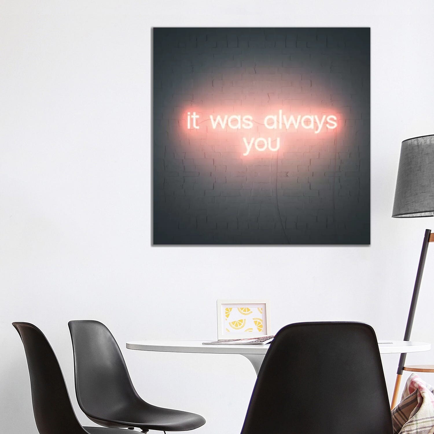 iCanvas "Neon Relax White on Black" by Hailey Carr Framed Canvas Print