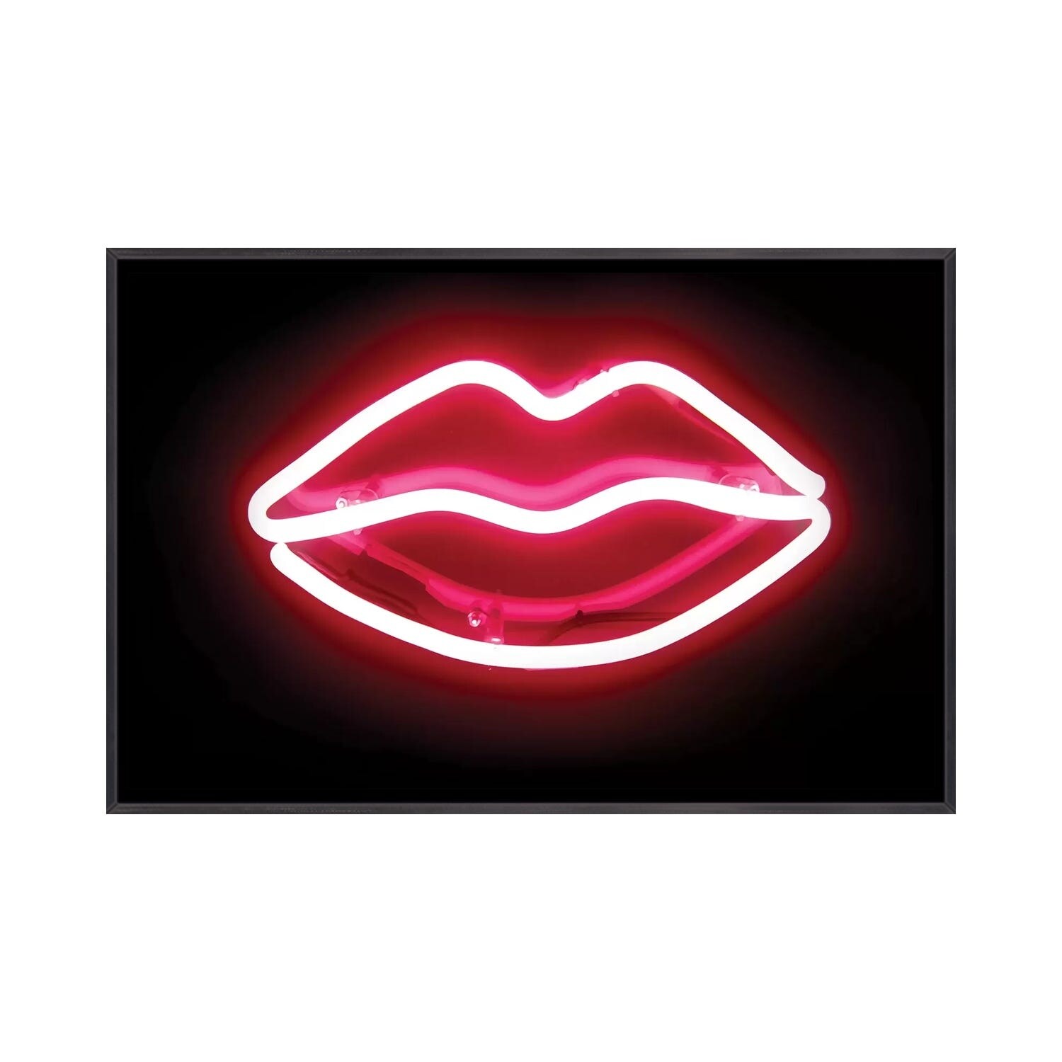 iCanvas "Neon Lips Red on Black" by Hailey Carr Framed