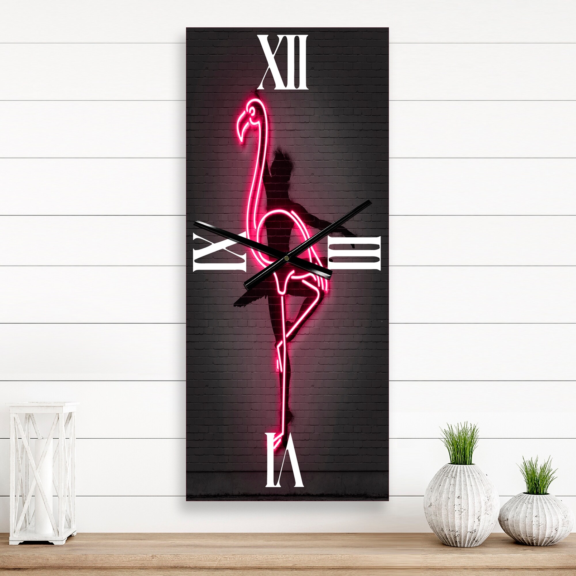 Designart 'Neon Pink Flamingo and Ballerina' Large Modern Large Wall Clock