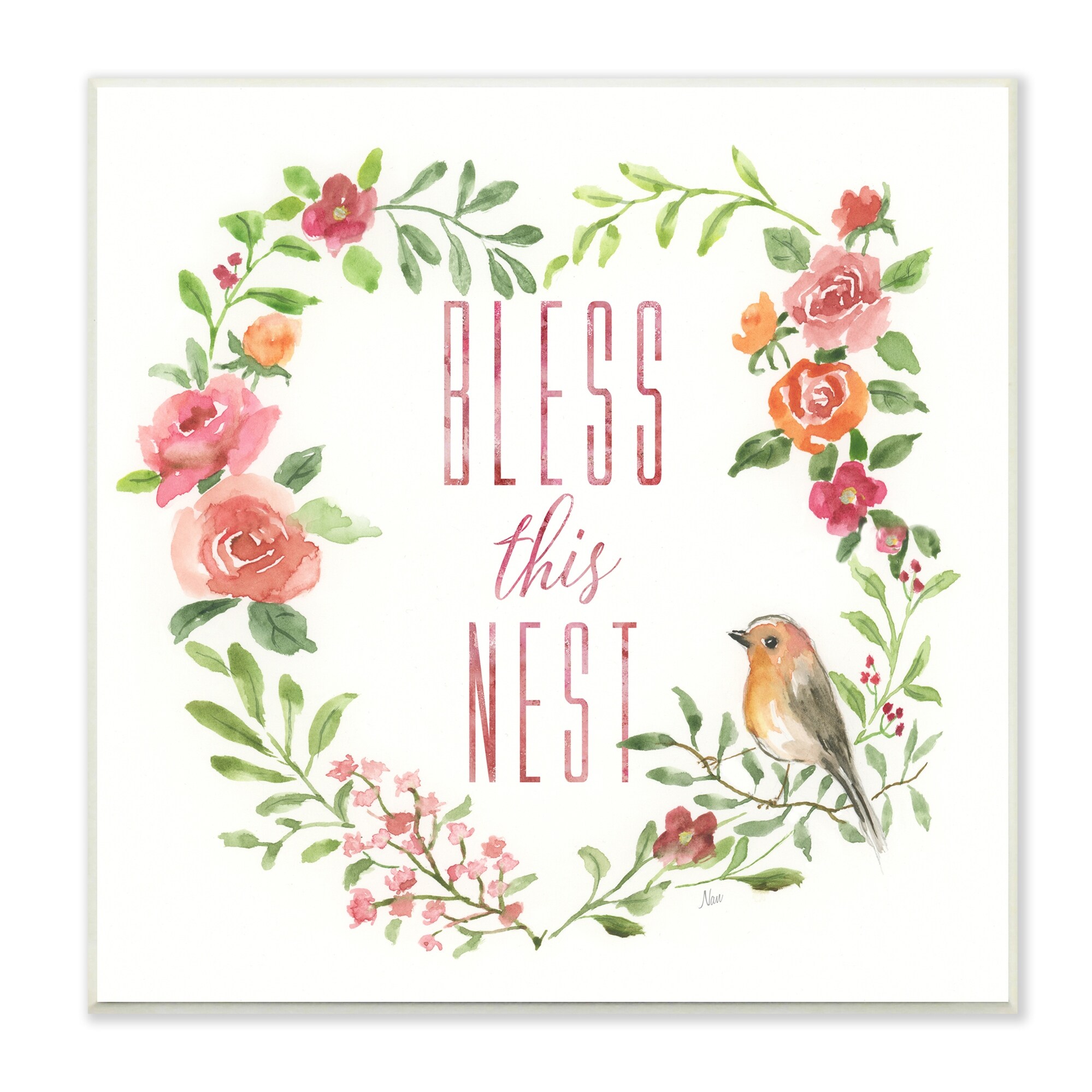 Stupell Bless This Nest Family Phrase Rose Heart Wreath Wood Wall Art - White