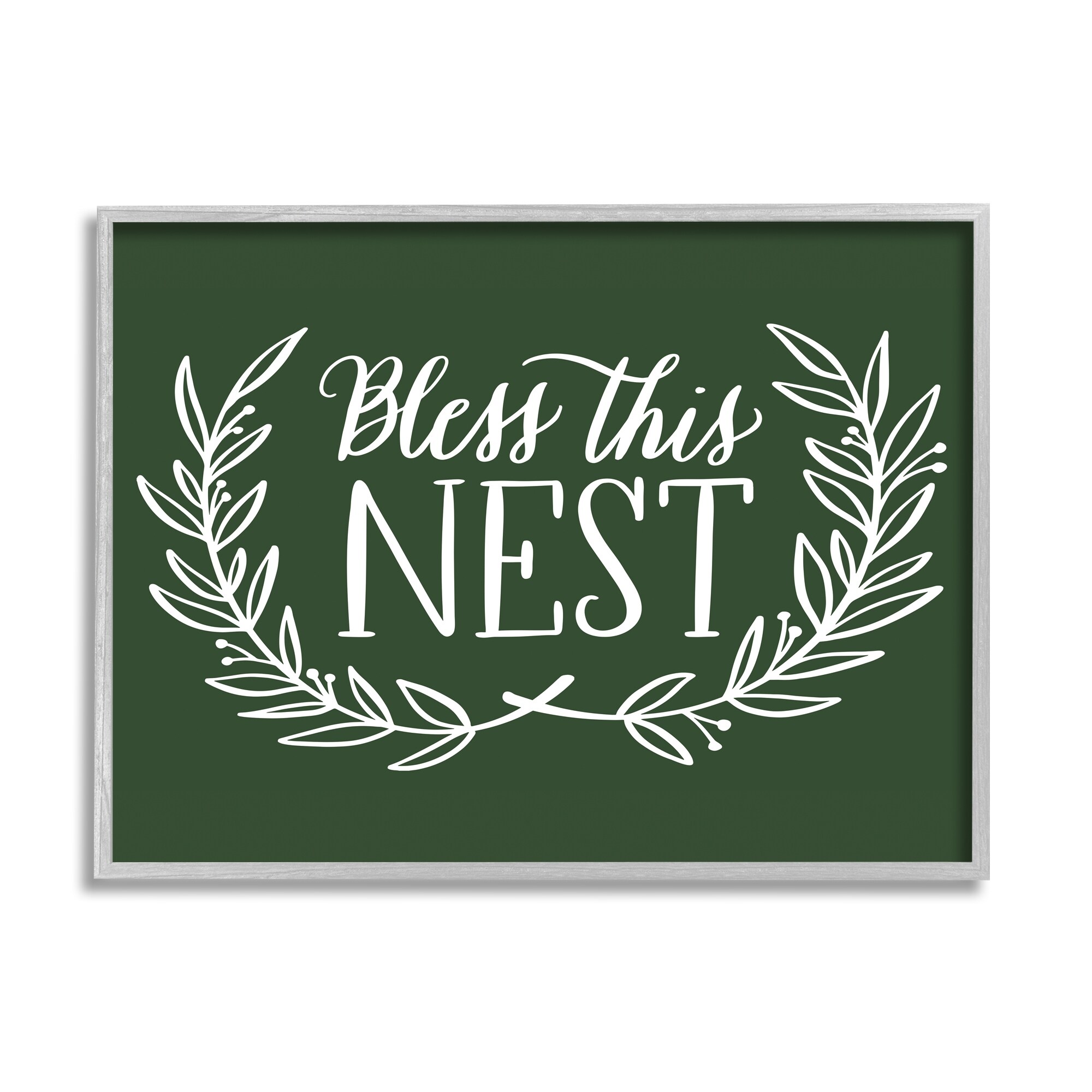 Stupell Industries Bless This Nest Laurel Wreath Crown Foliage Framed Wall Art,Design by Amanda McGee - Green