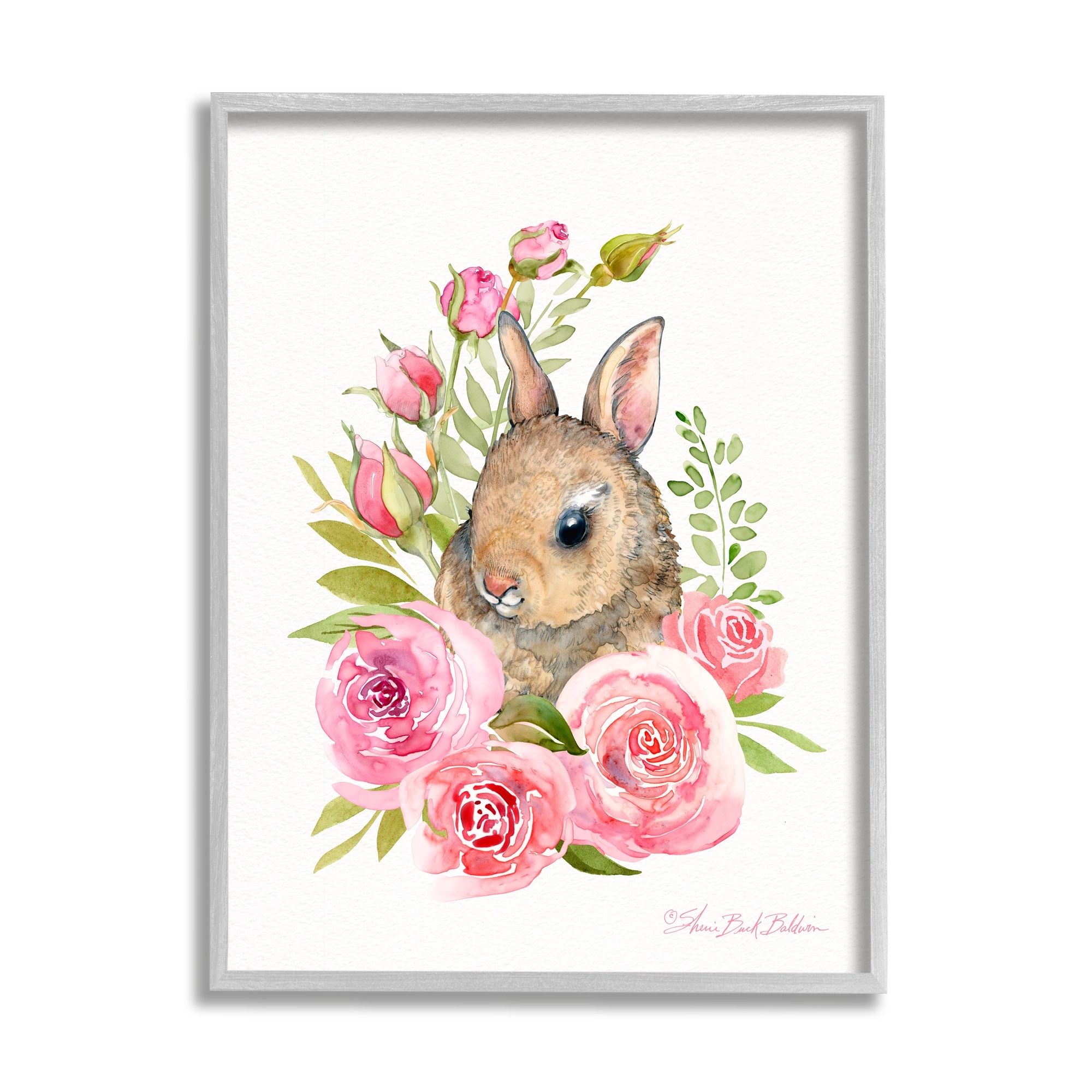 Stupell Industries Woodland Rabbit Pink Rose Nest Spring Florals Framed Wall Art