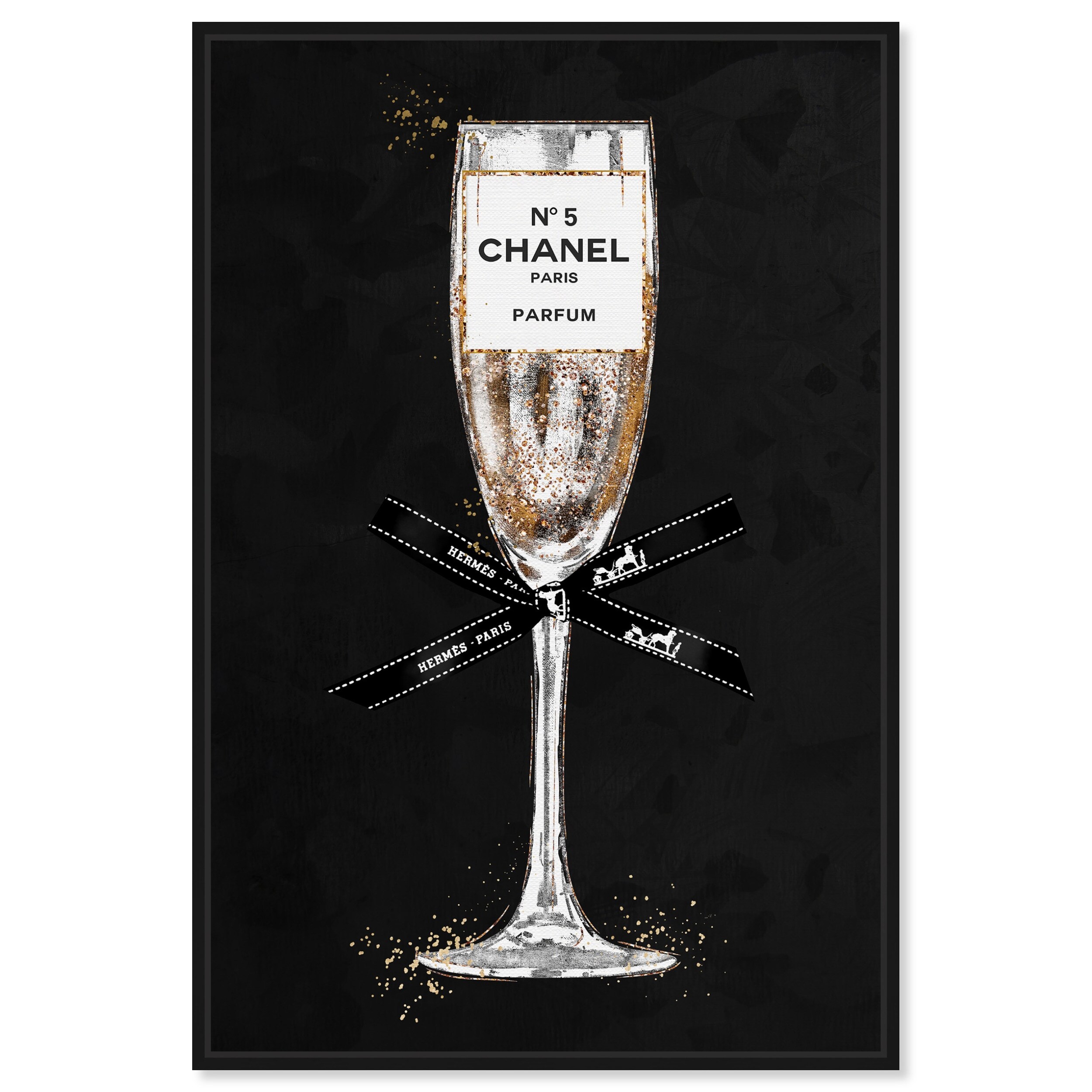 Oliver Gal 'Glam Bubbly Champagne Perfume Ribbon Noir' Wall Art Canvas