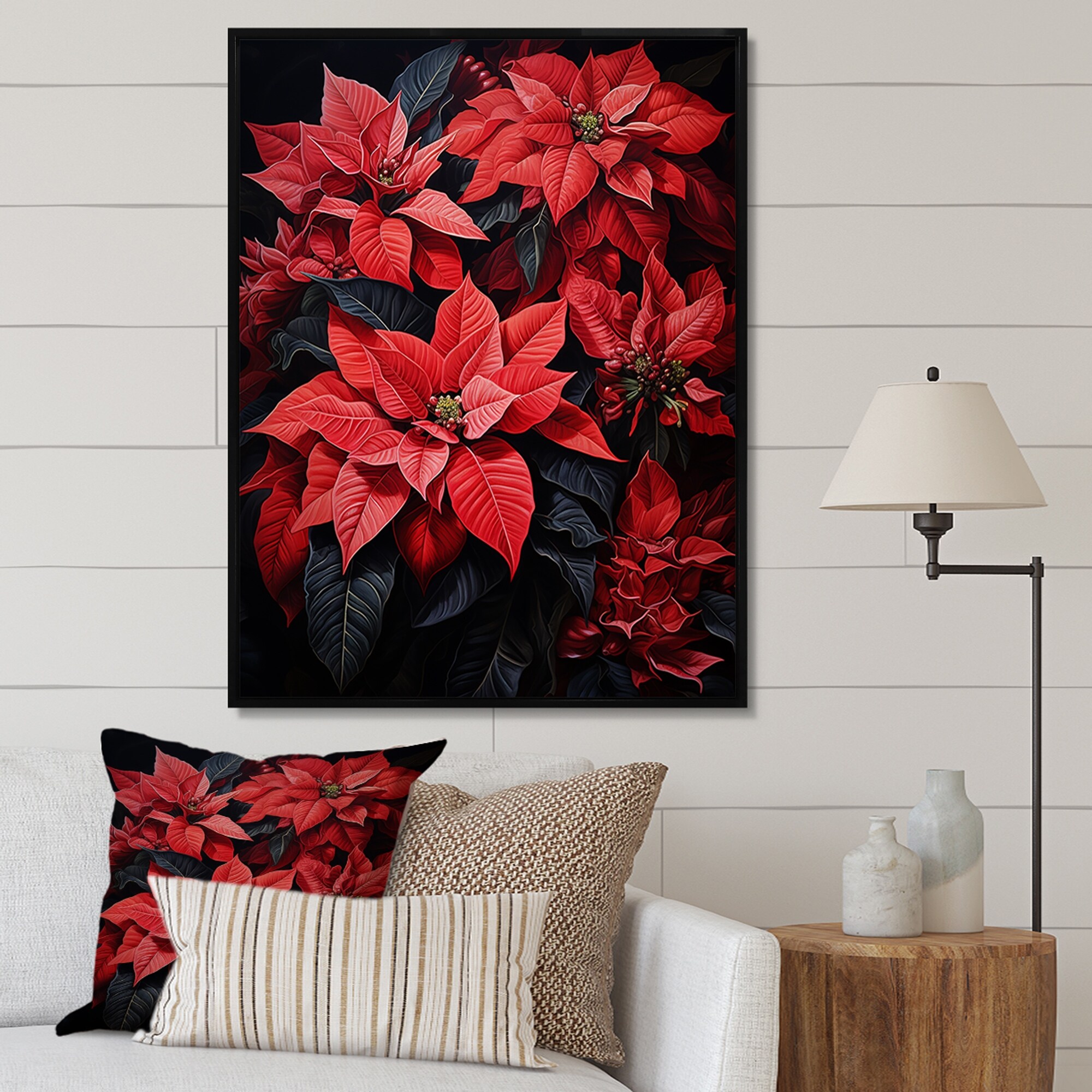 Designart "Poinsettia Flower Noir I" Poinsettias Framed Canvas Art Print