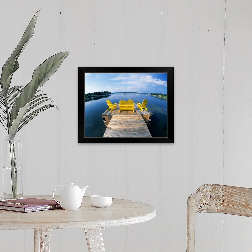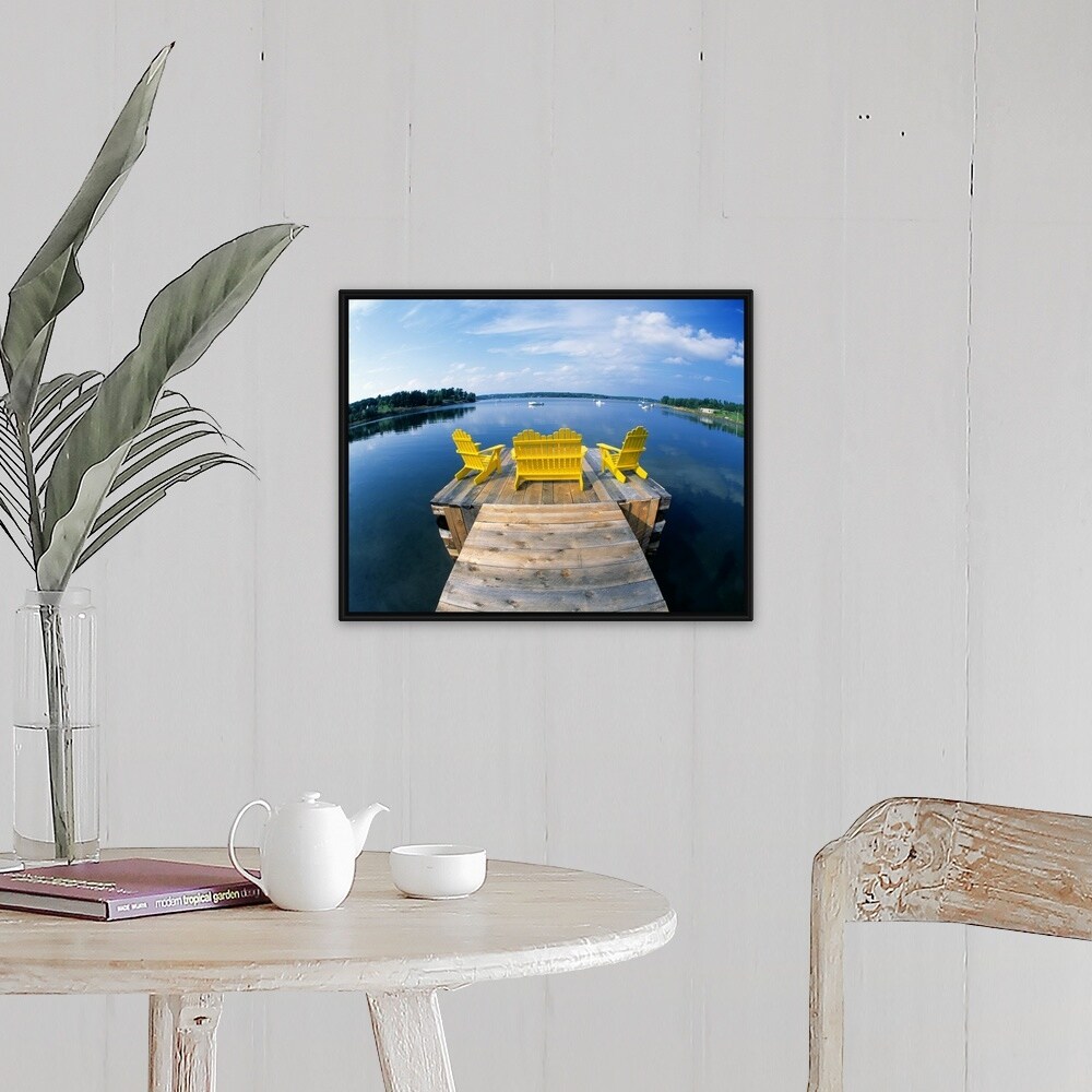 "Adirondack Chairs on Dock Nova Scotia Canada" Black Float Frame Canvas Art