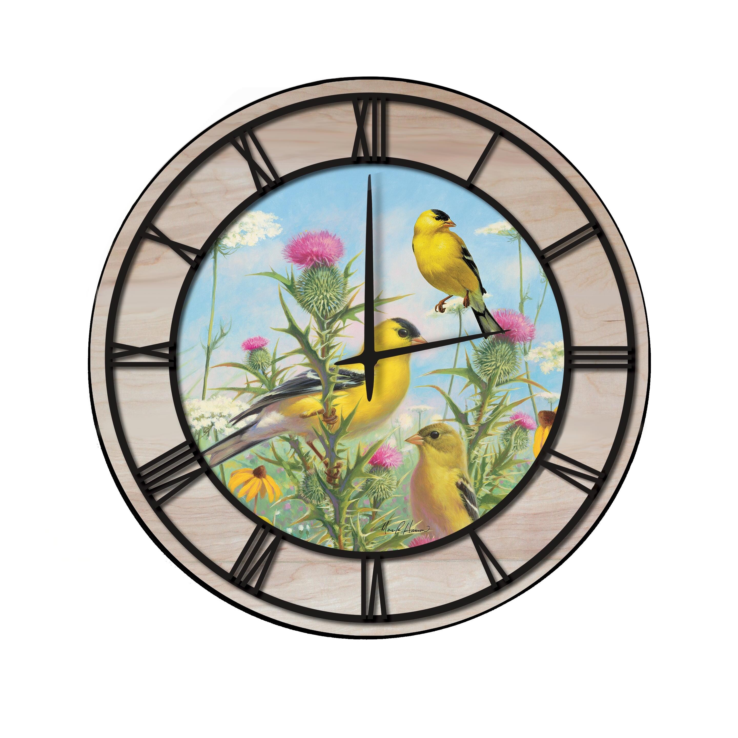 Wall Clock with Natural Woodgrain Accent - Golden Glories - Black Numbers - 24" x 24"