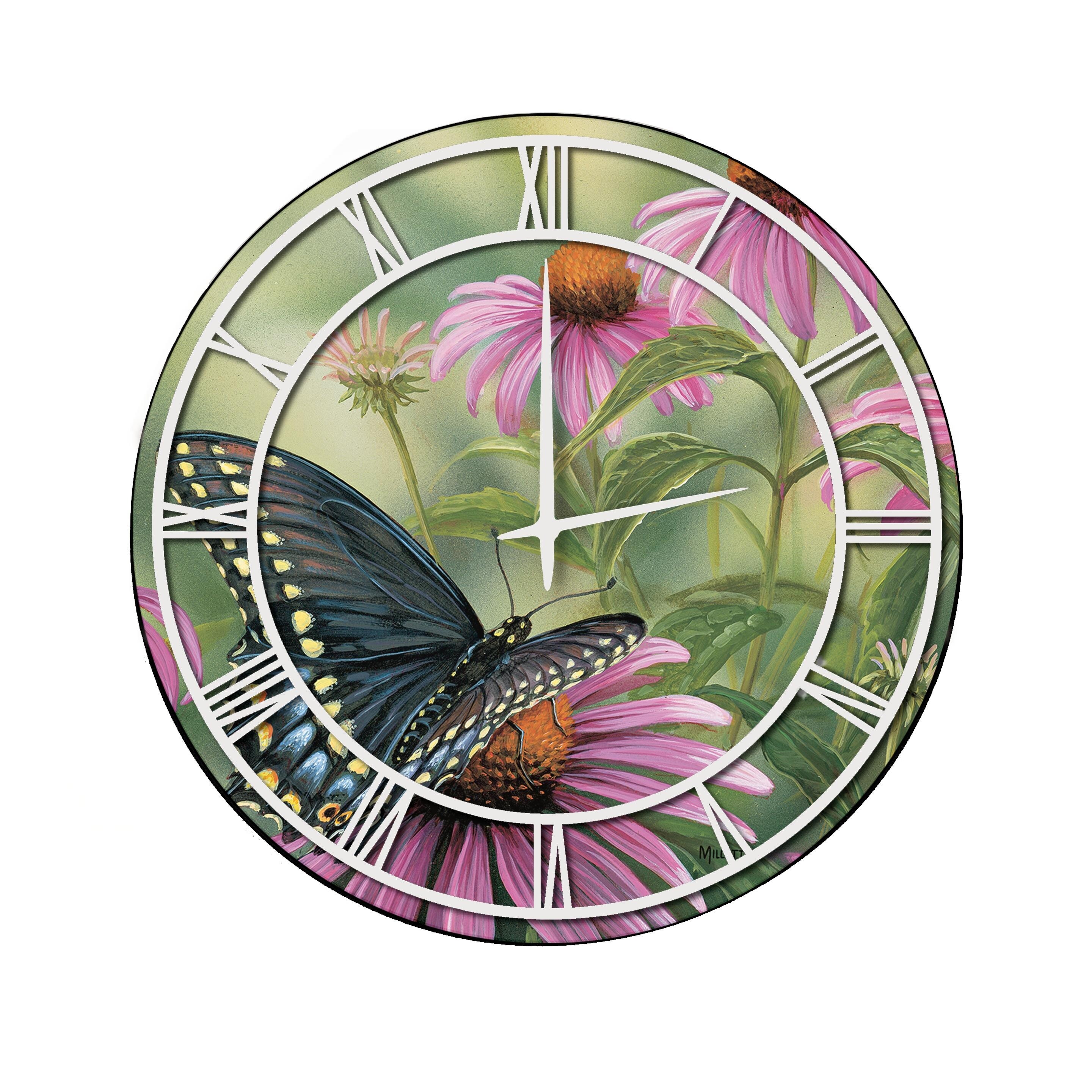 Wall Clock with Full Coverage Art - Black Swallowtail Butterfly - White Numbers - 24" x 24"