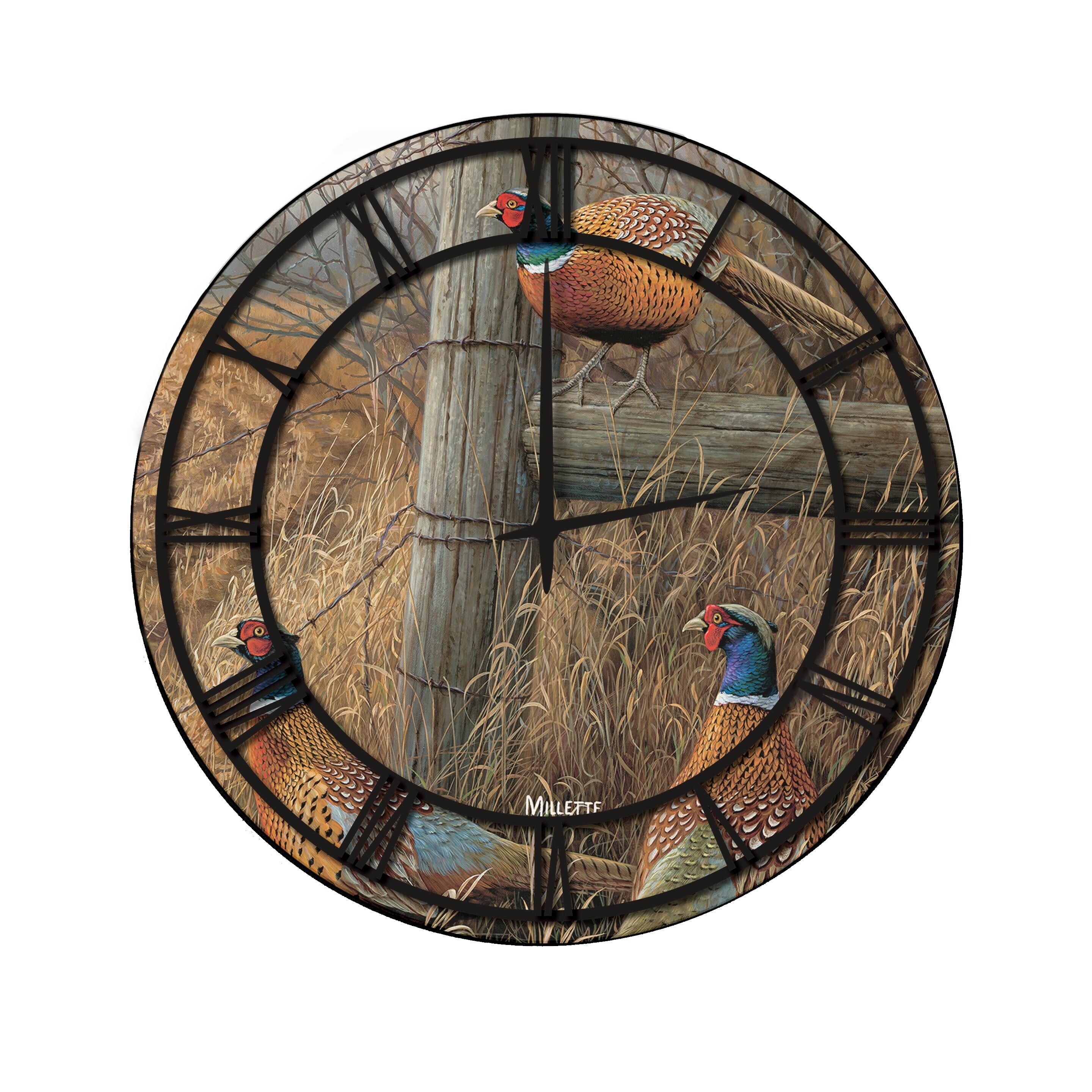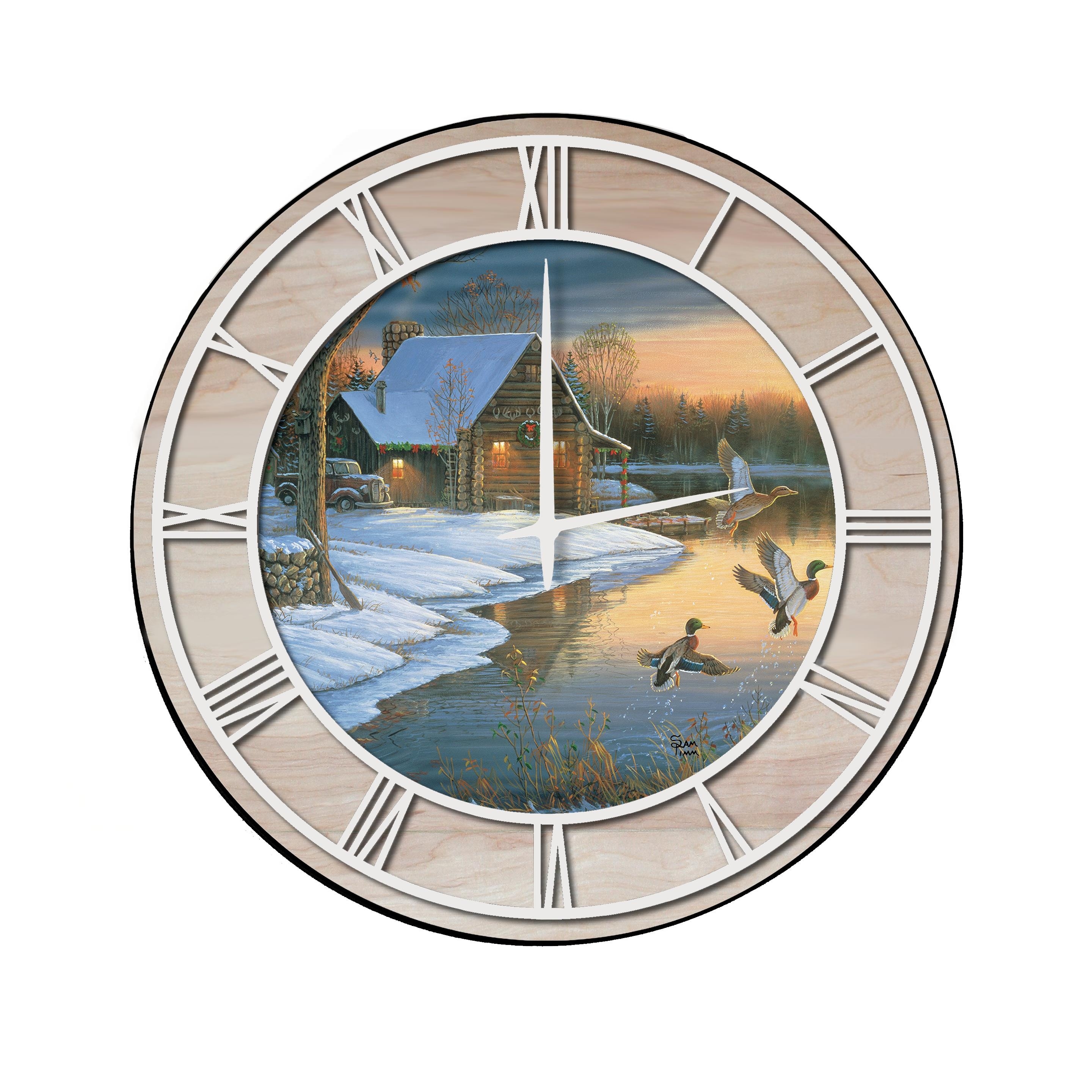 Wall Clock with Natural Woodgrain Accent - Back Water Mallards - White Numbers - 24" x 24"
