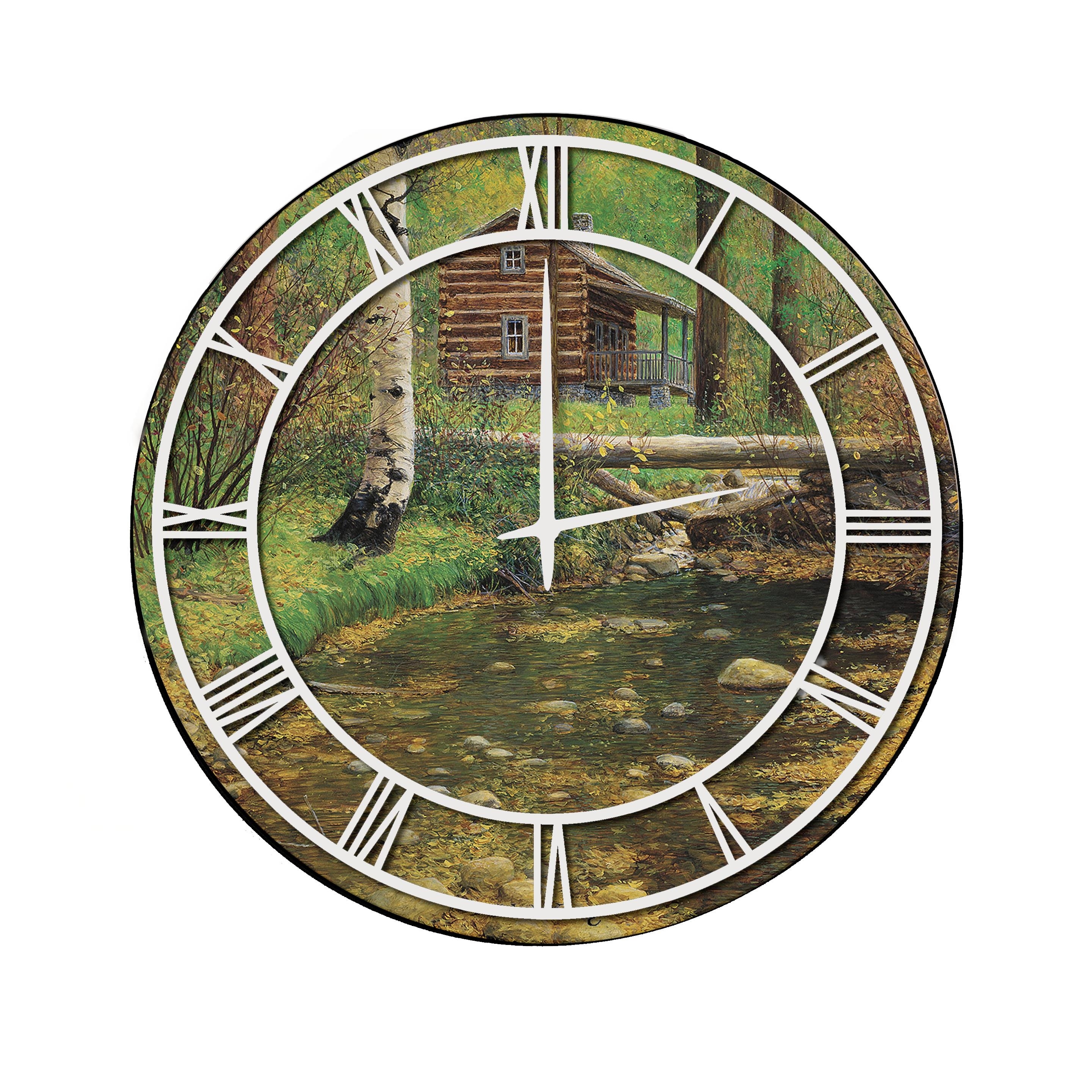 Wall Clock with Full Coverage Art - Autumn Hideaway - White Numbers - 24" x 24"