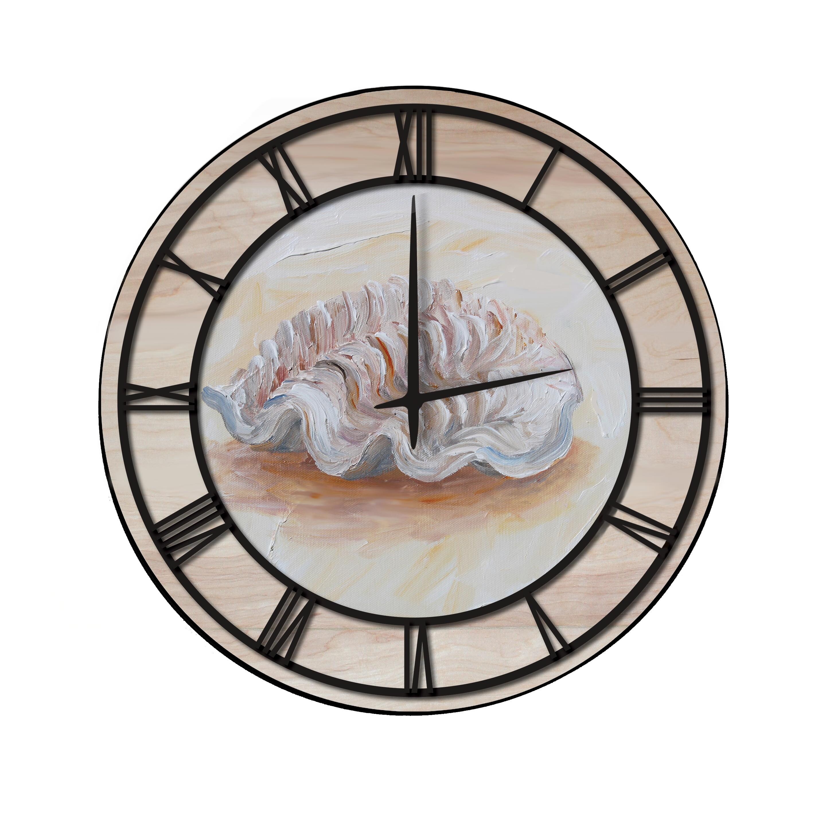 Wall Clock with Natural Woodgrain Accent - Sea Shell #1 - Black Numbers - 24" x 24"