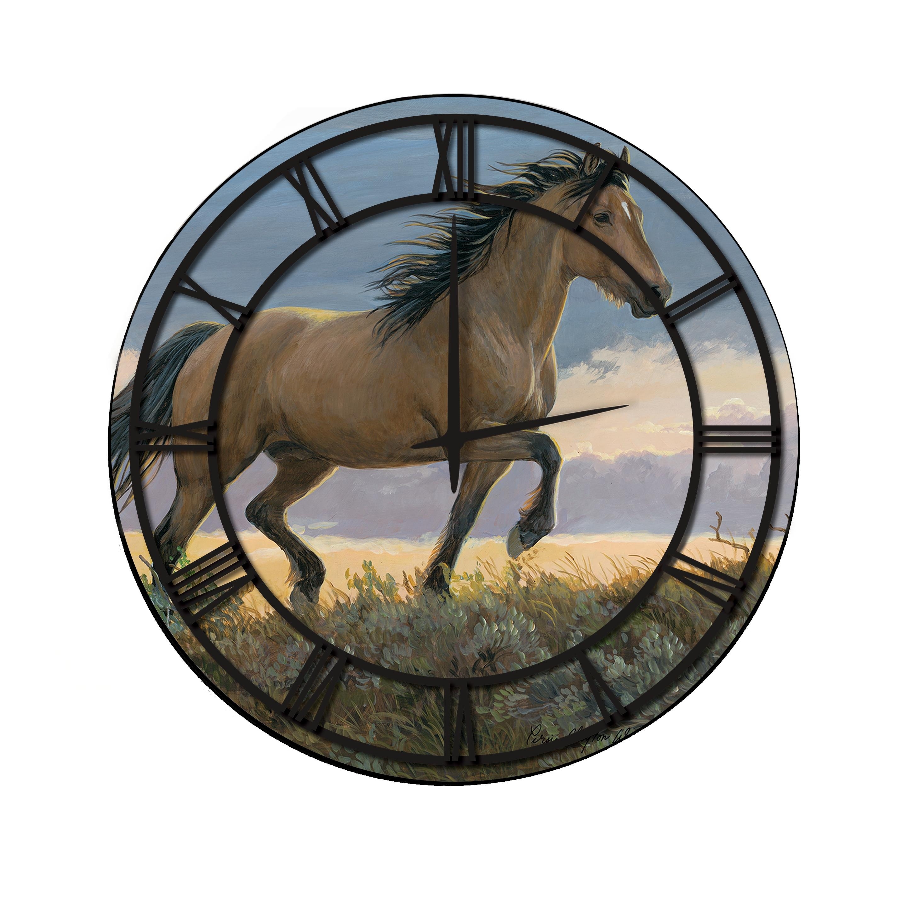 Wall Clock with Full Coverage Art - Buckskin Stallion - Black Numbers - 24" x 24"