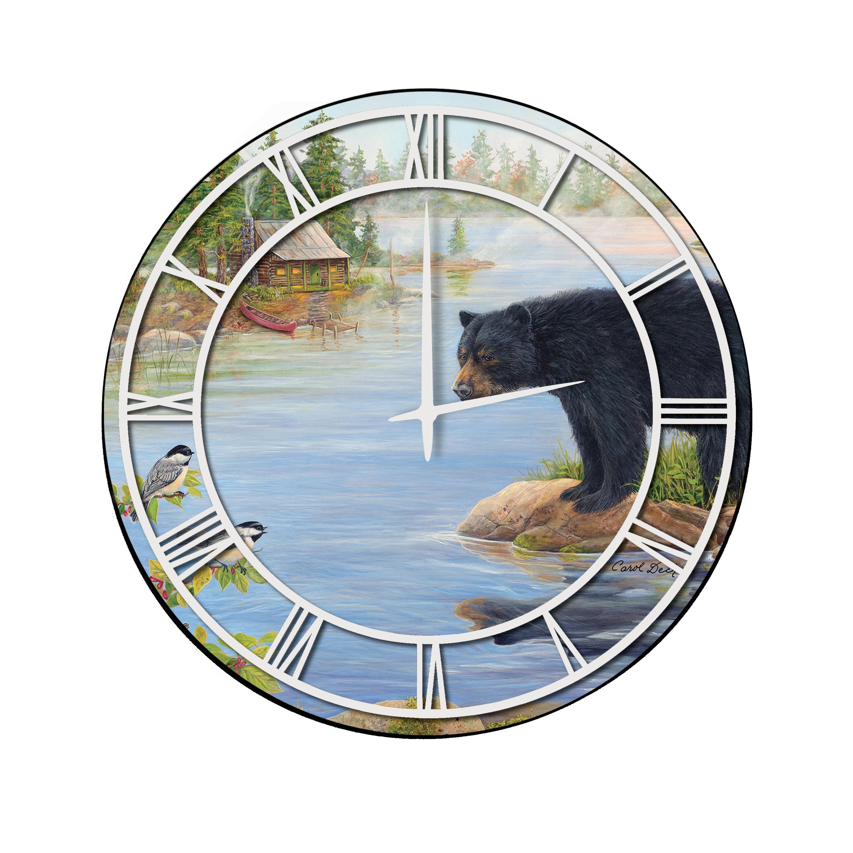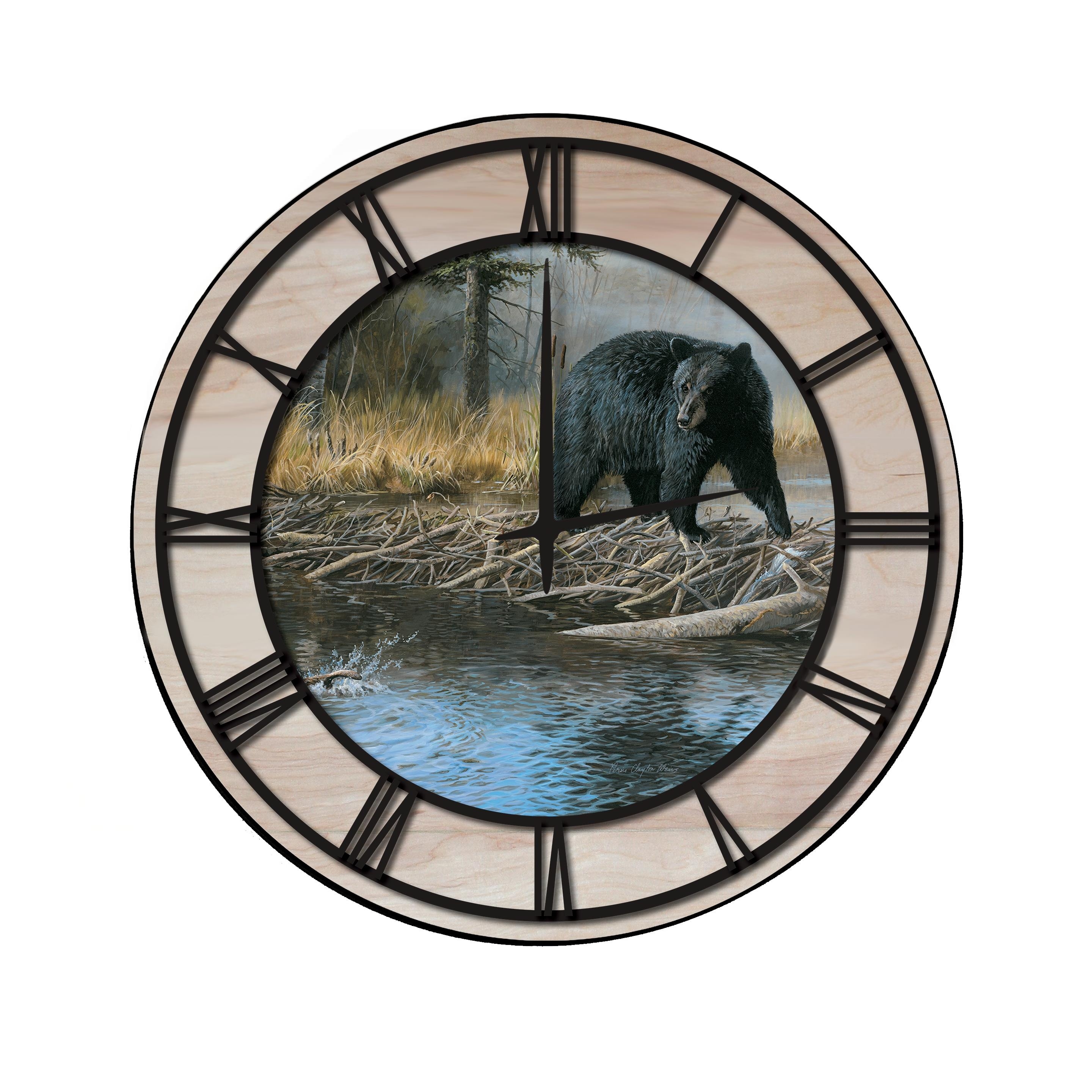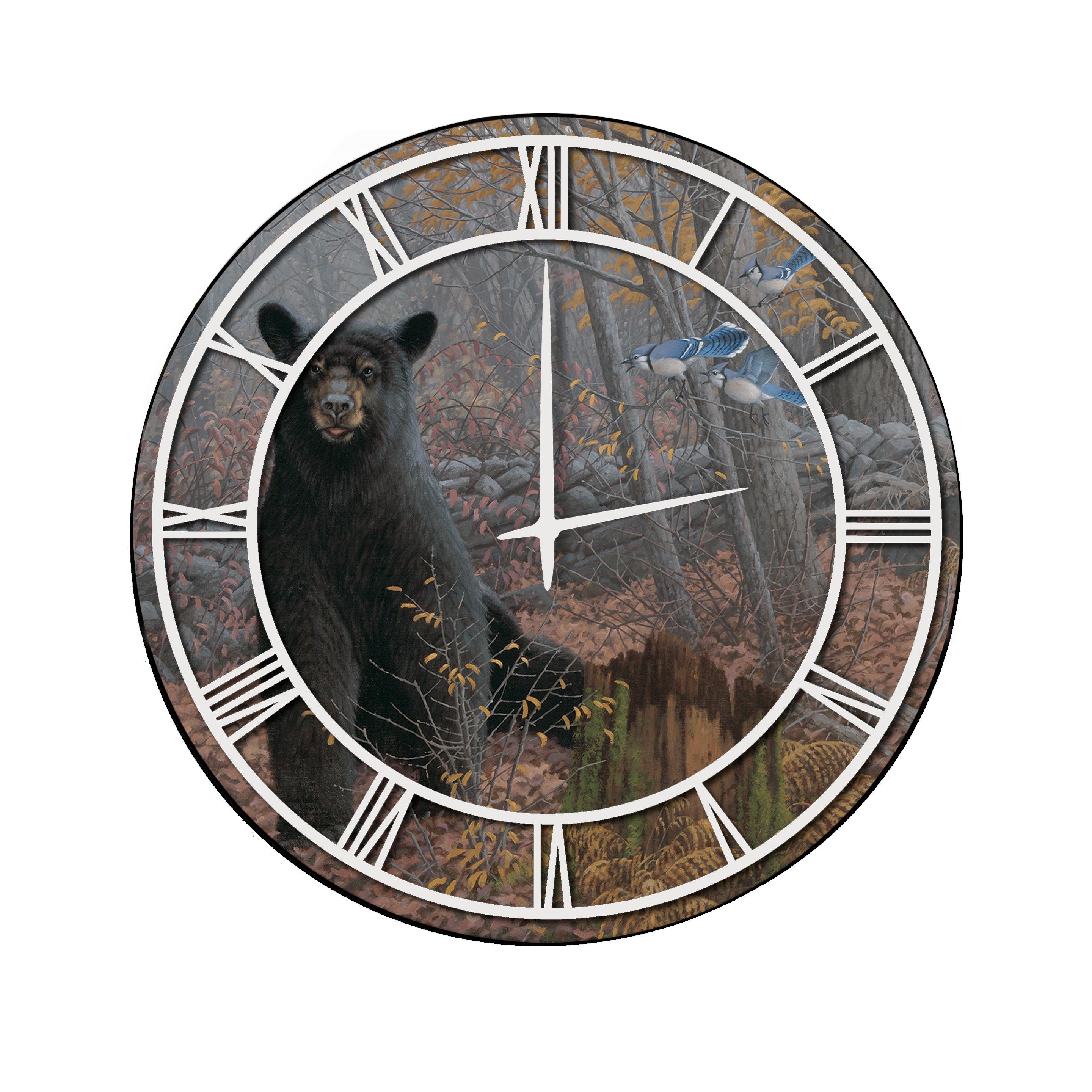 Wall Clock with Full Coverage Art - Stonewall Black Bear - White Numbers - 24" x 24"