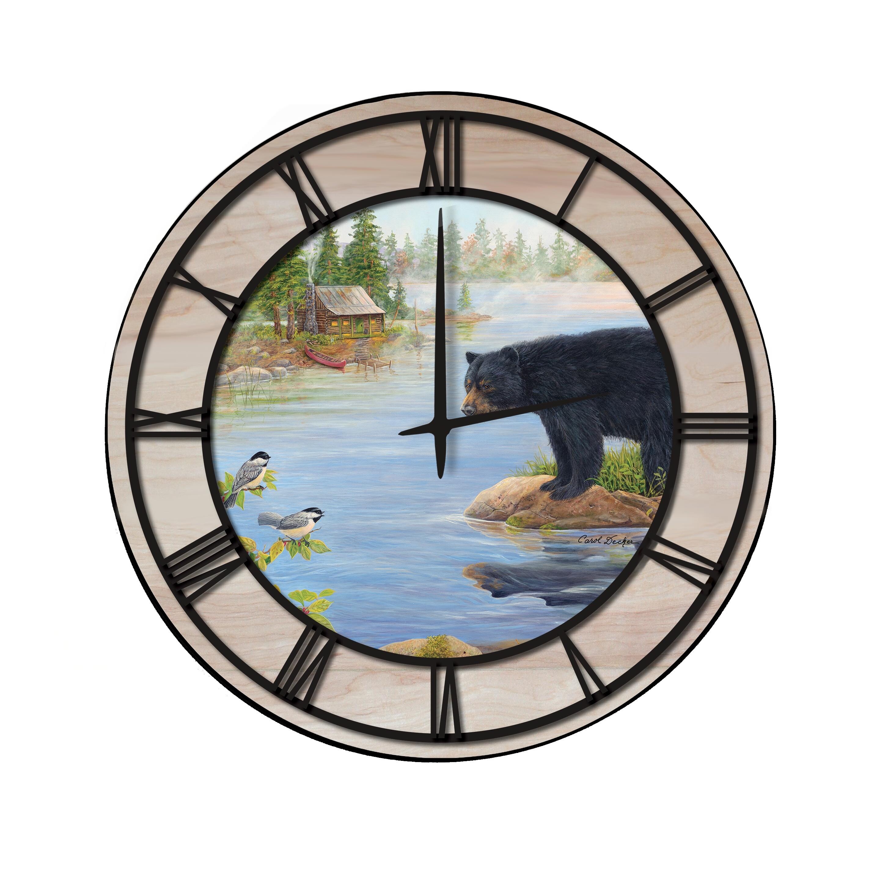 Wall Clock with Natural Woodgrain Accent - No Trespassing Bear - Black Numbers - 24" x 24"
