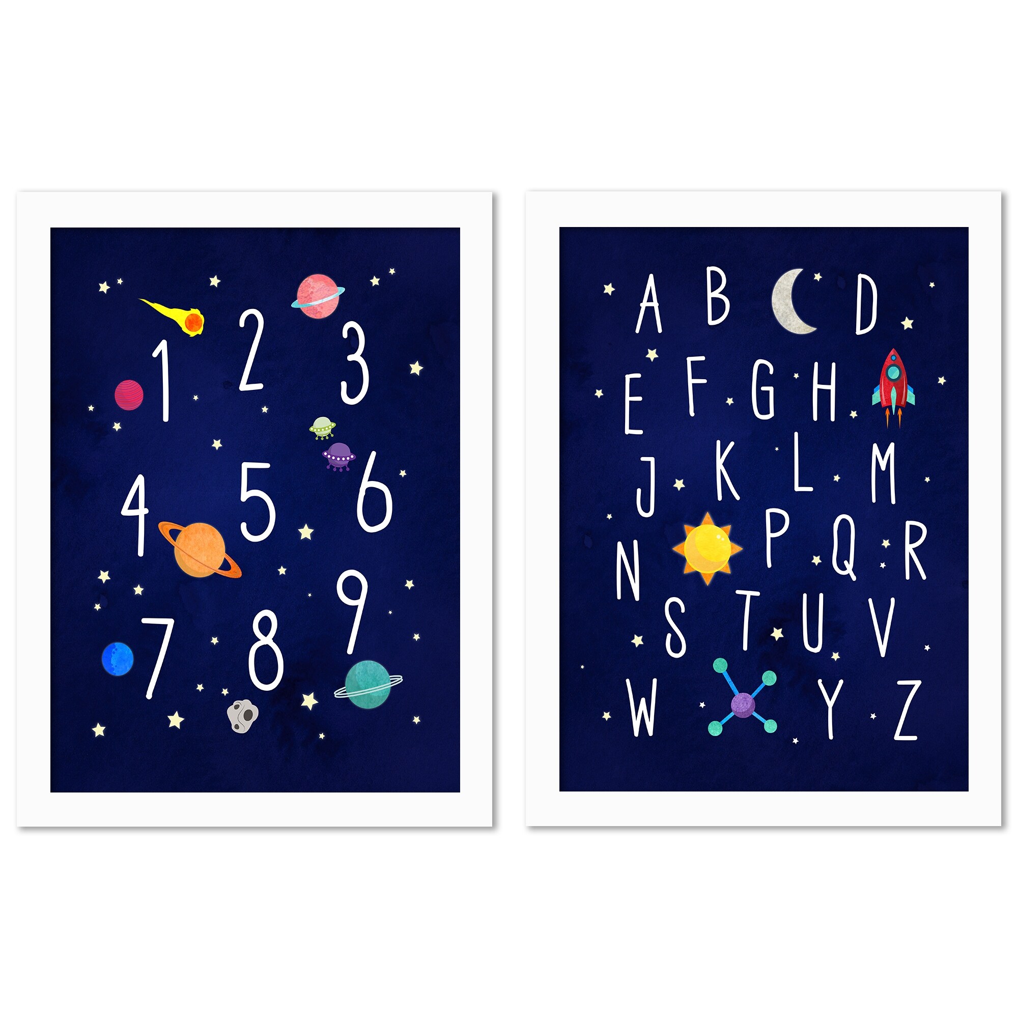 Space Numbers by Elena David 2 Piece White Framed Print Art Set
