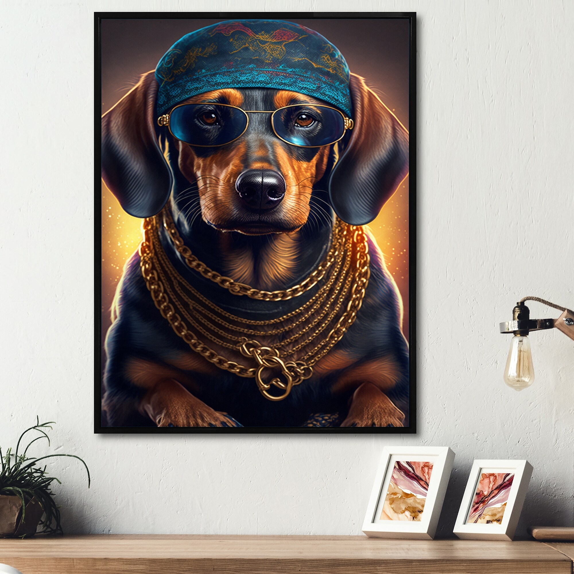 Designart "Dachshund Gangster in NYC I" Animals Framed Canvas Art Print