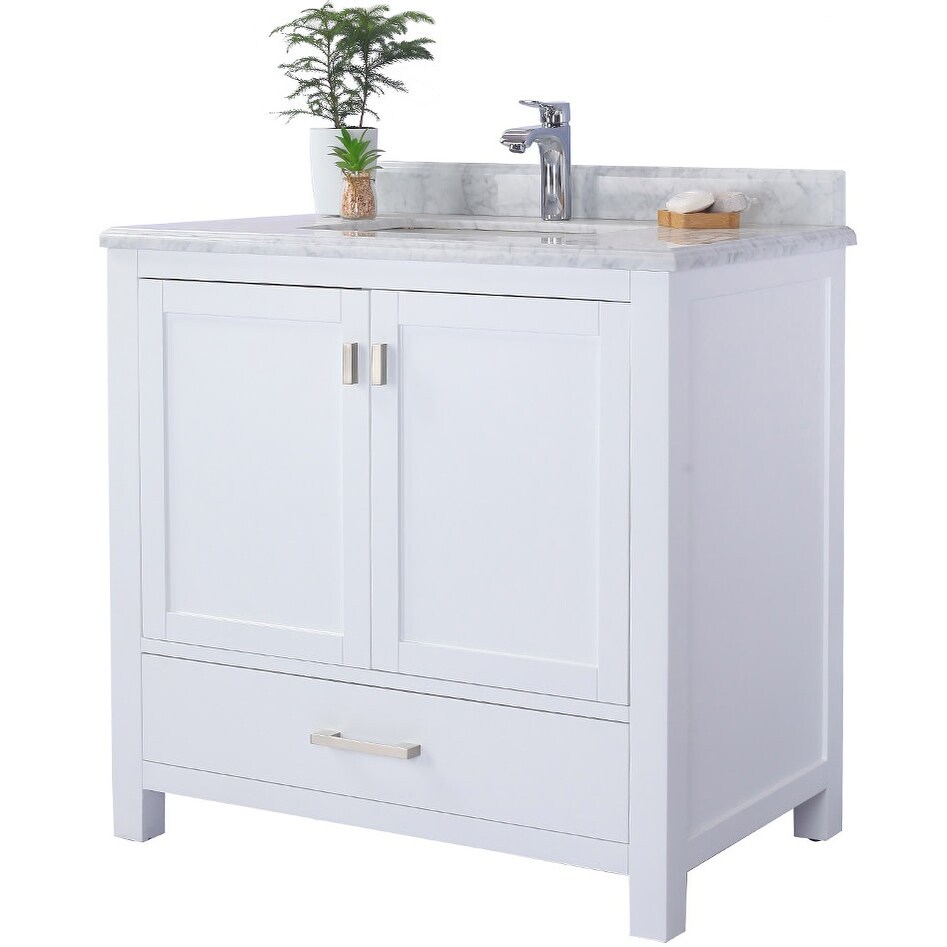 Miseno Prim 36" Free Standing Vanity Set with White Solid Oak Cabinet,