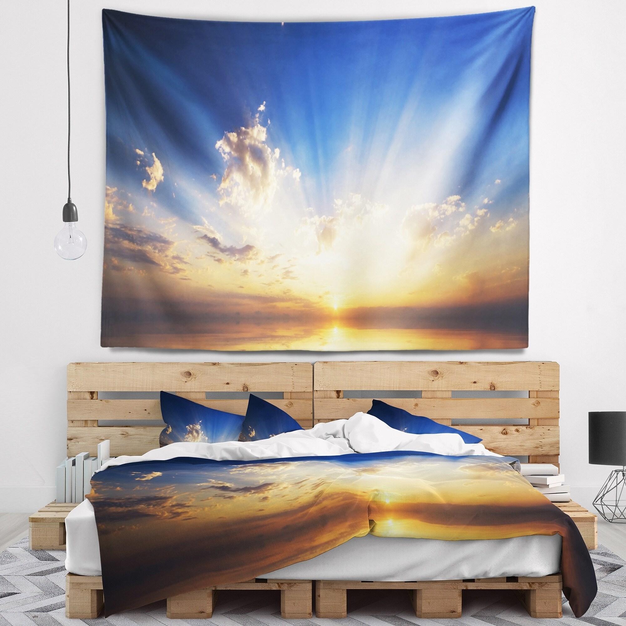 Designart 'Sunset in the Ocean Blue Sky Panorama' Seashore Wall Tapestry