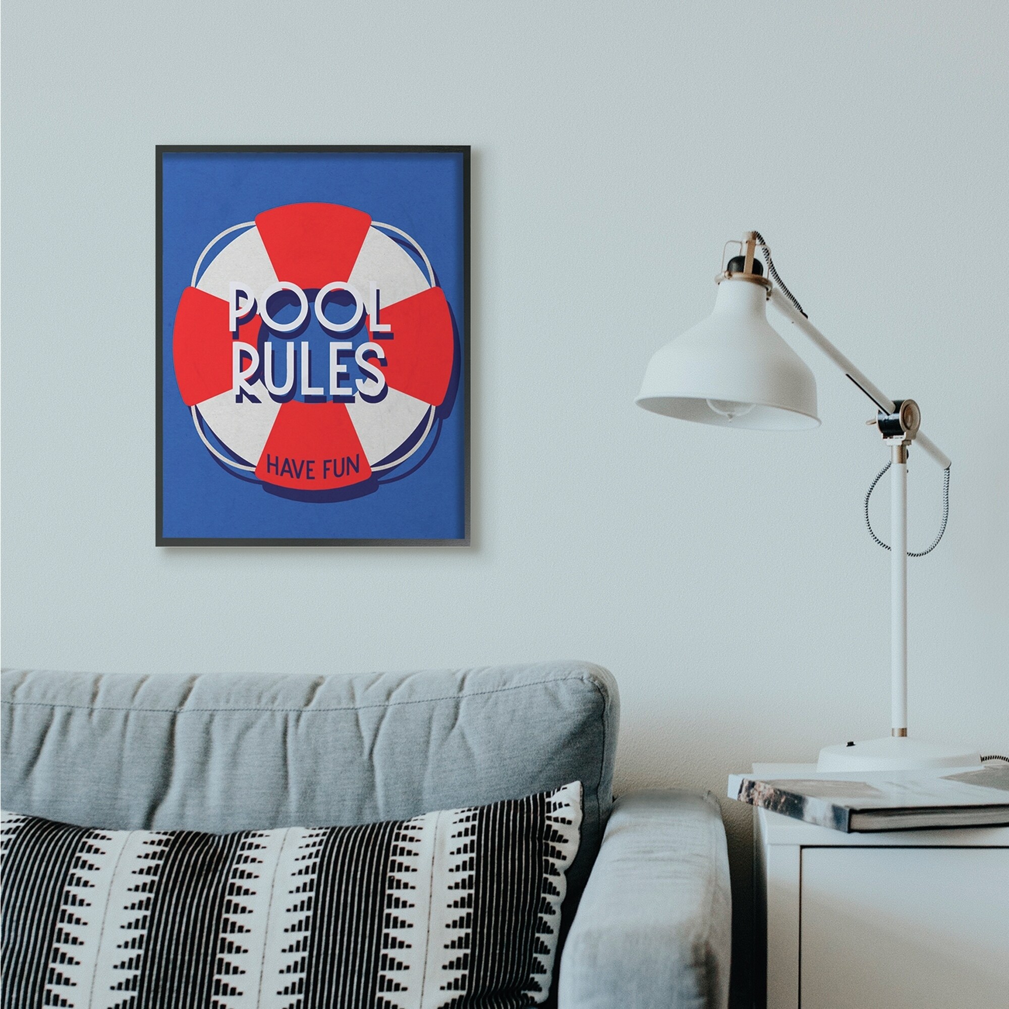 Stupell Industries Pool Rules Beach Coast Ocean Blue Red Word Design,11x14, Design By Artist Daphne Polselli
