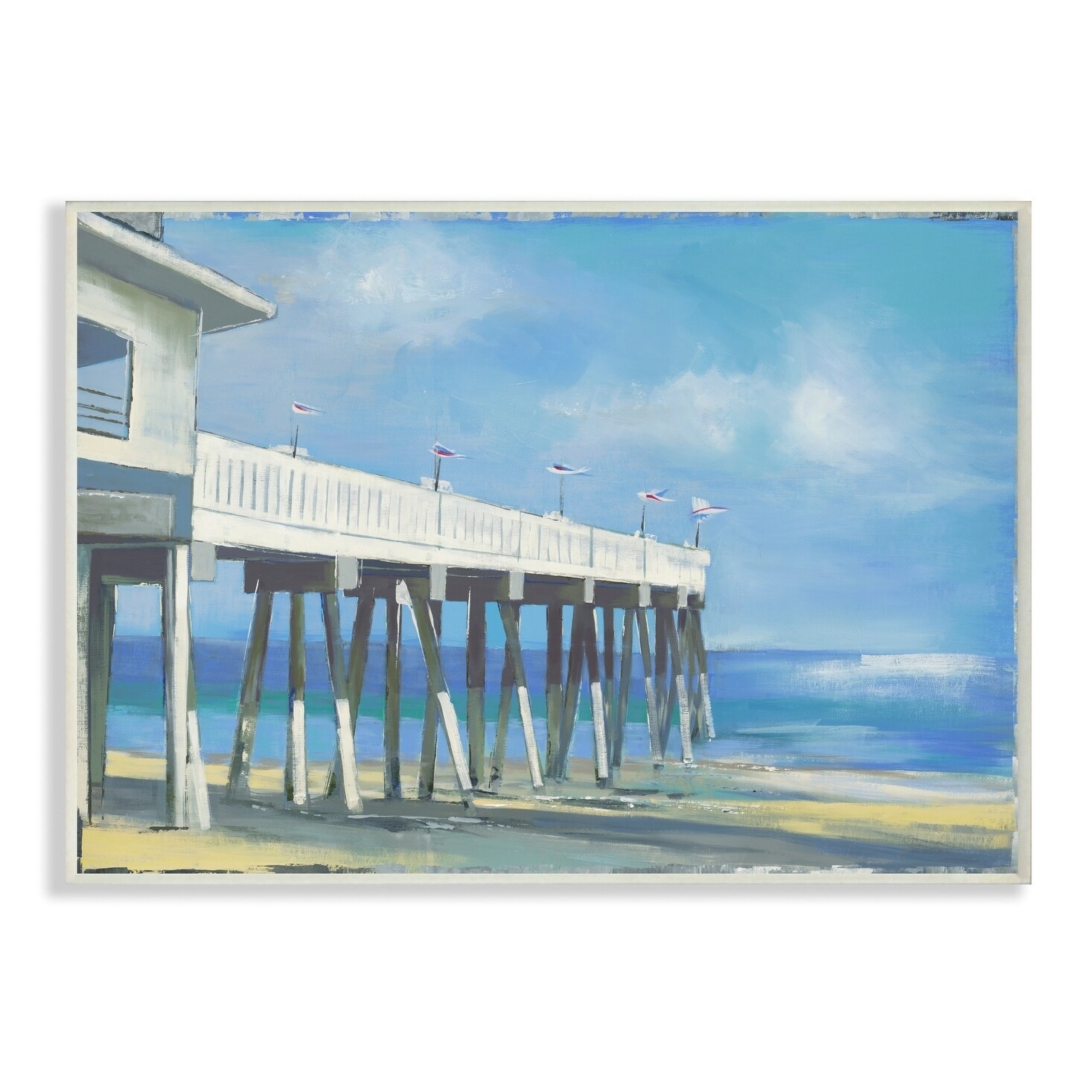 Stupell Industries Beach Boardwalk Ocean Blue Landscape Painting Wood Wall Art