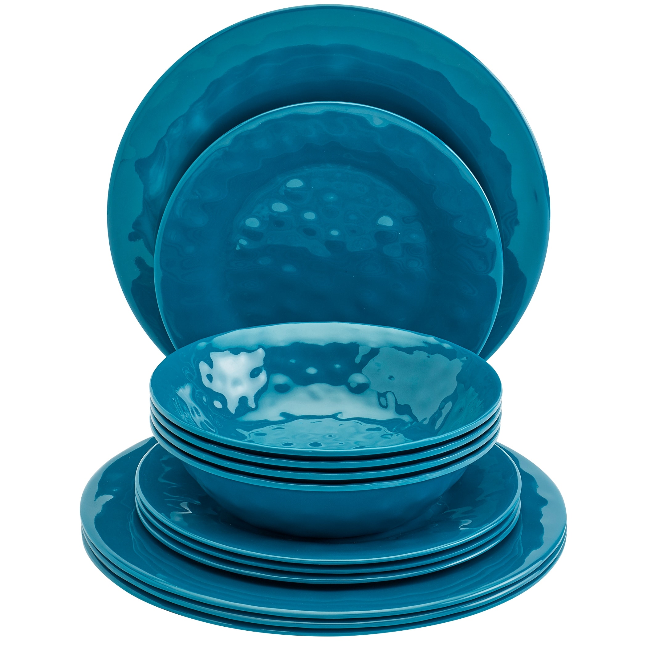Tabletops Gallery 12PC Summer Fun Melamine Dinnerware Set - Ocean Blue