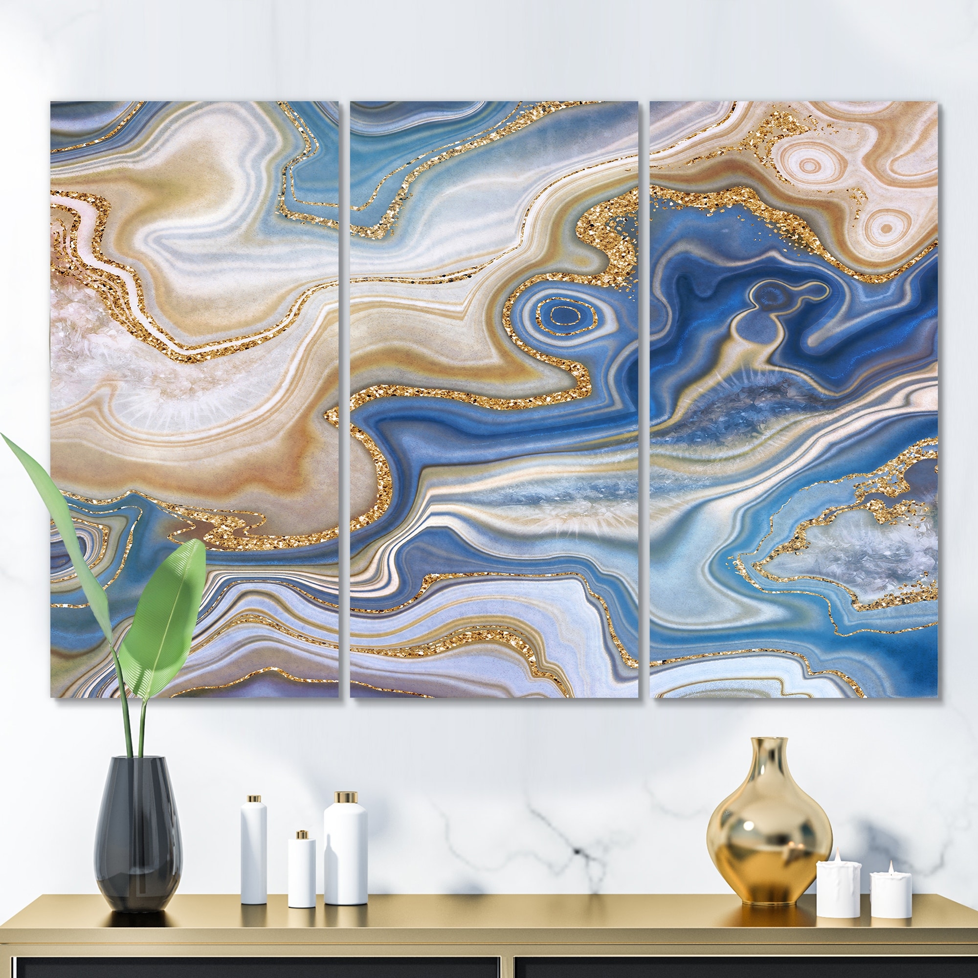 Designart "Ocean Blue Golden Jasper Agate II" Modern Canvas Wall Art Print - 36x28 - 3 Panels