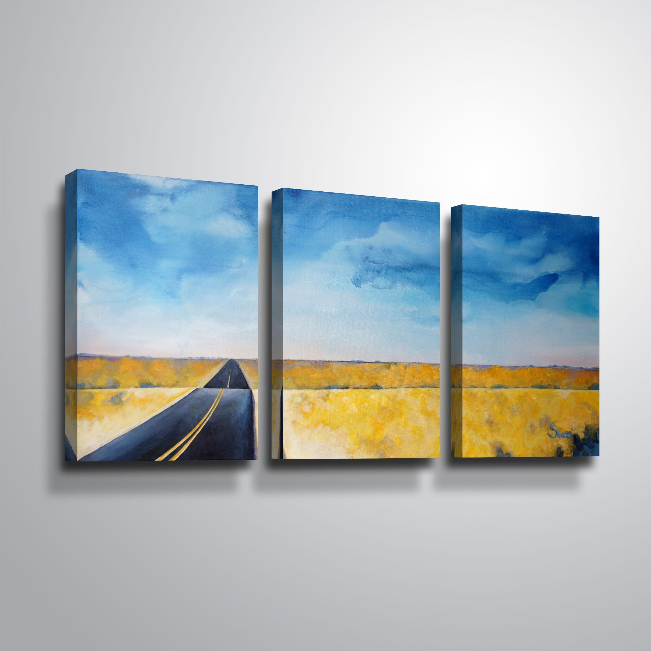 ArtWall Canola Field with road Gallery Wrapped Canvas - Yellow