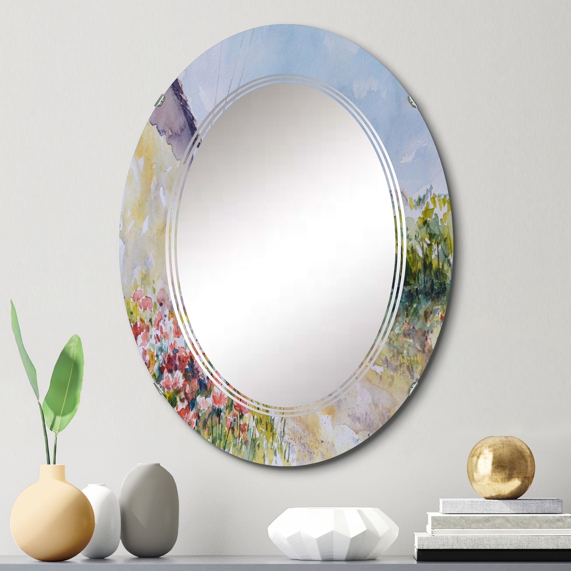 Designart 'Poppy Flowers By A Countryside Road' Printed Country Wall Mirror