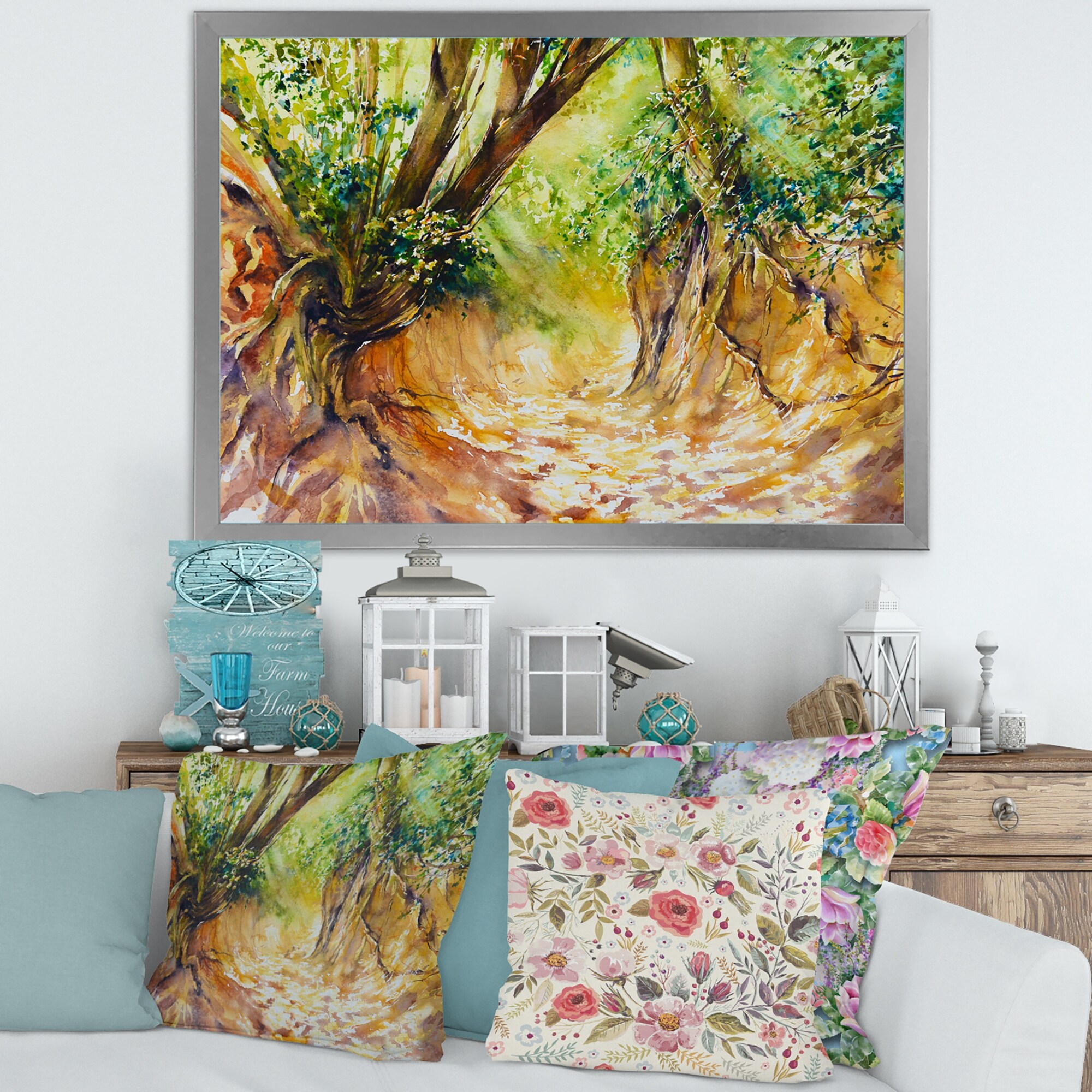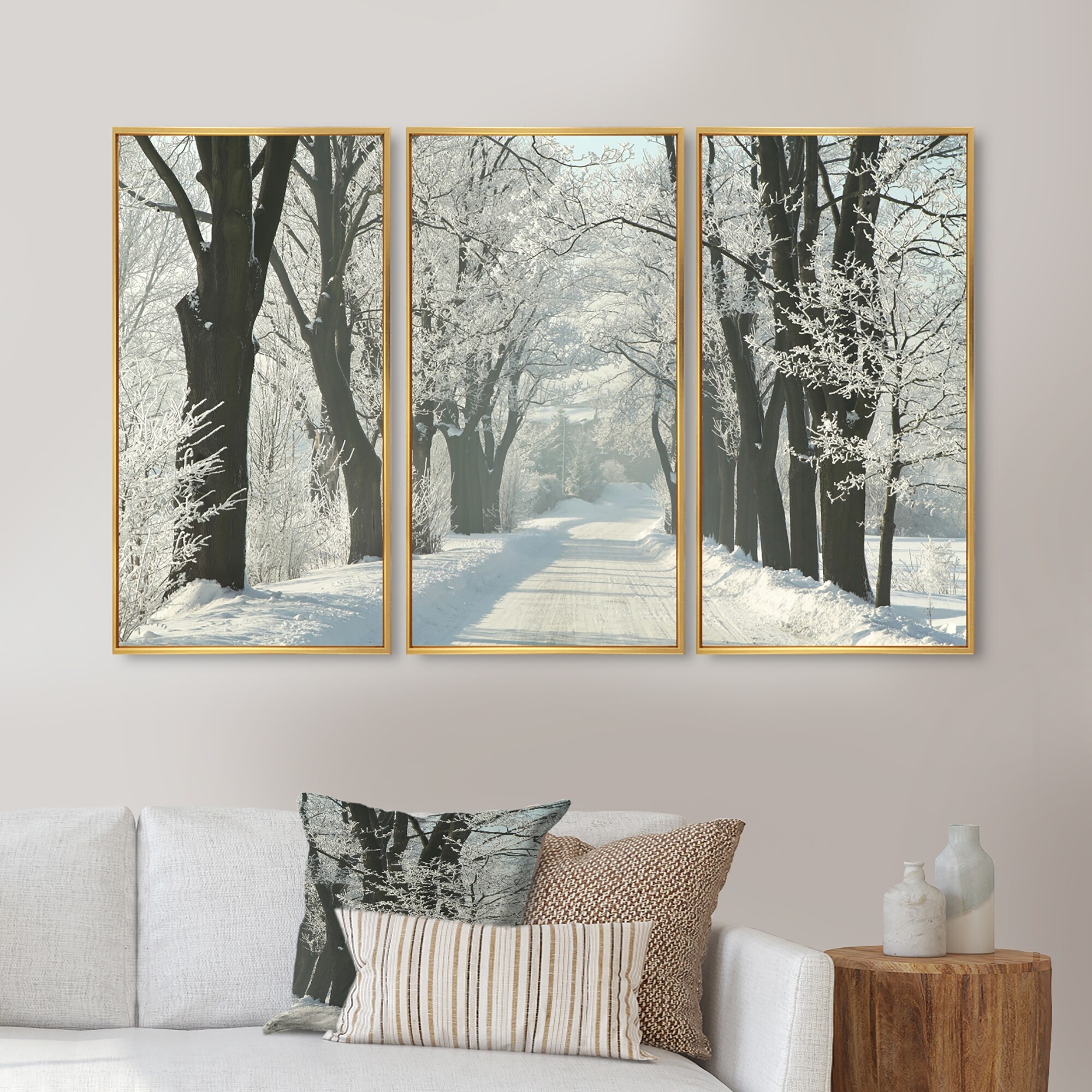 Designart "Mystic Road in Forest" Landscape Framed Canvas Wall Art Print Set of 3 - 4 Colors of Frames