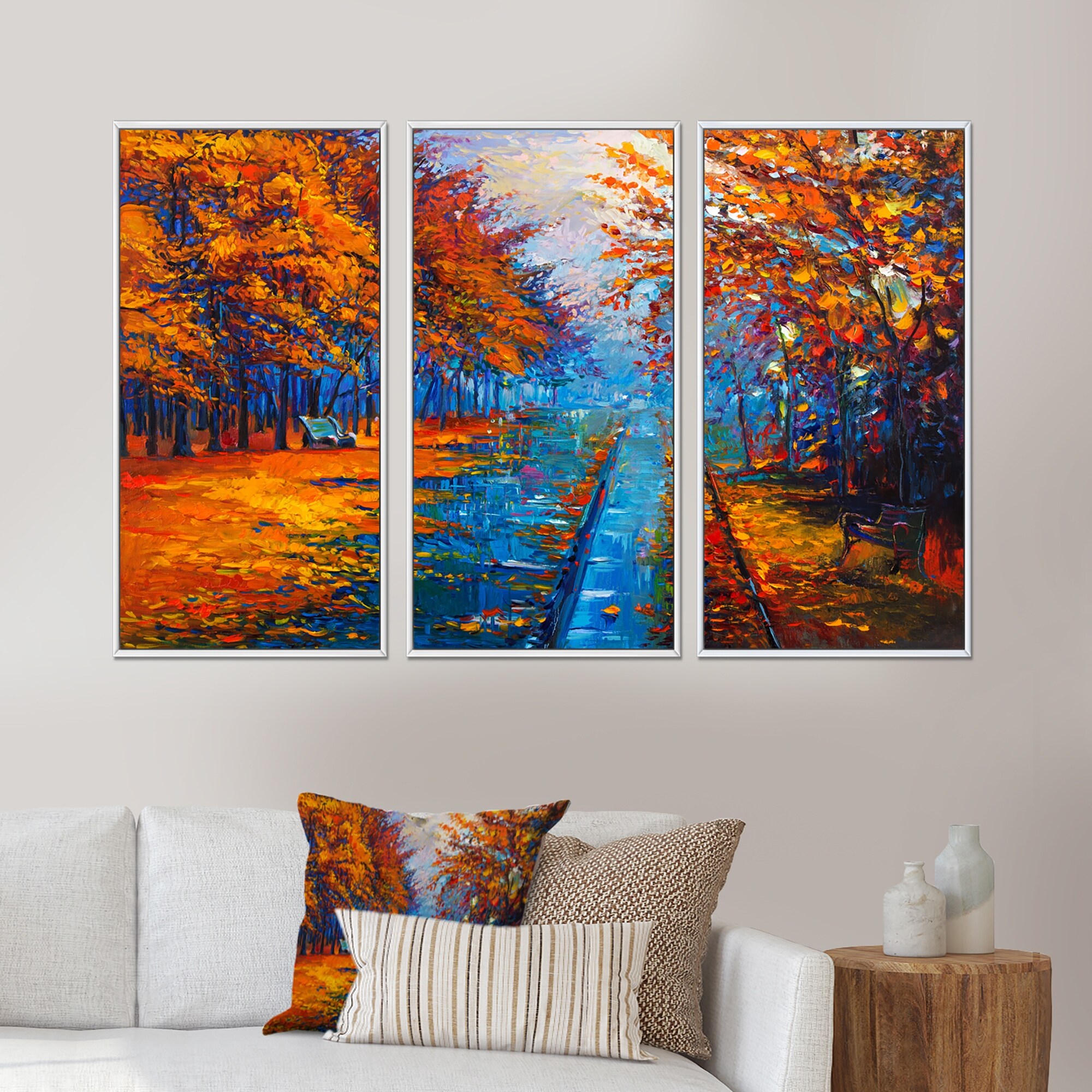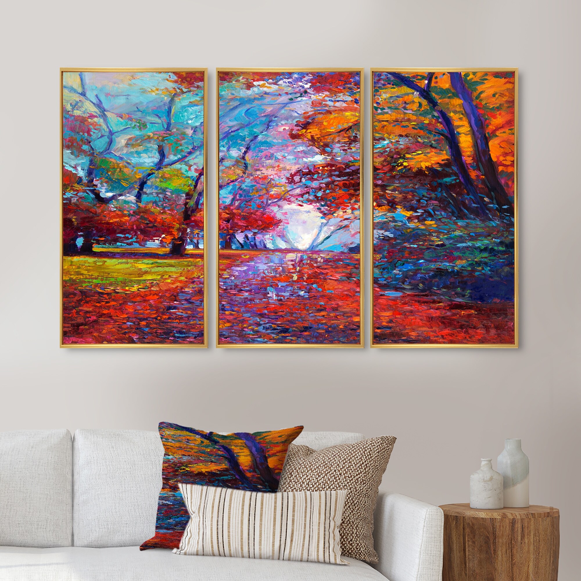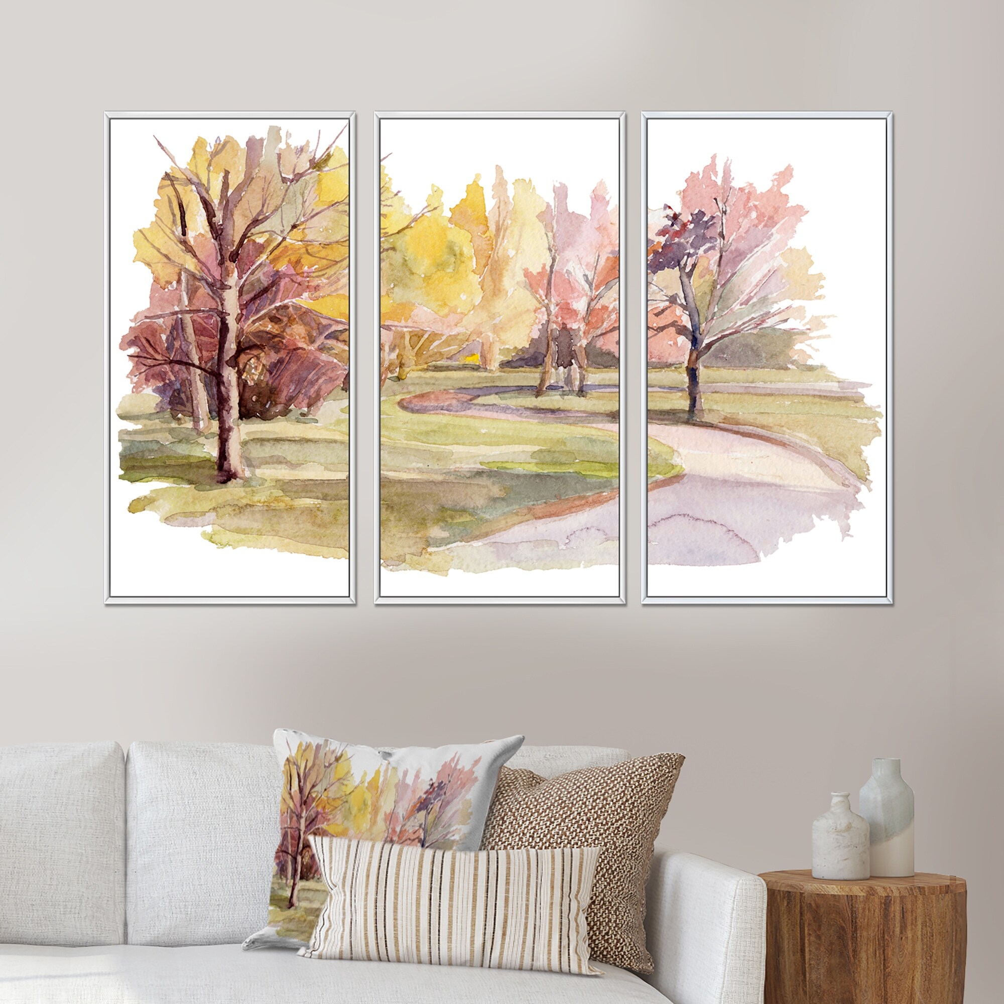 Designart "Park Road With Autumn Trees" Country Framed Wall Decor Set of 3 - 4 Colors of Frames