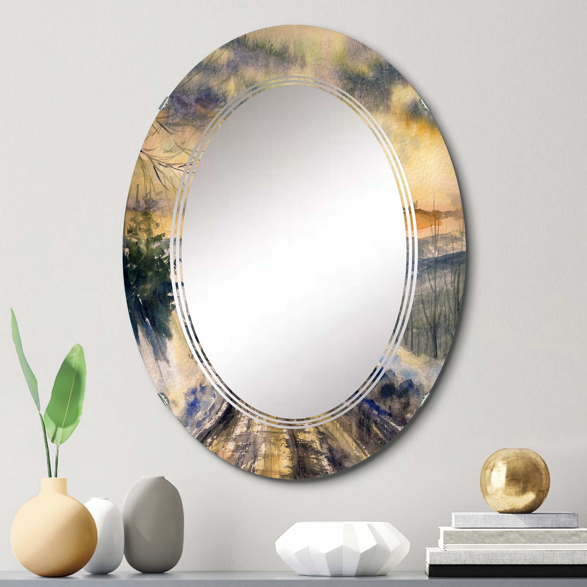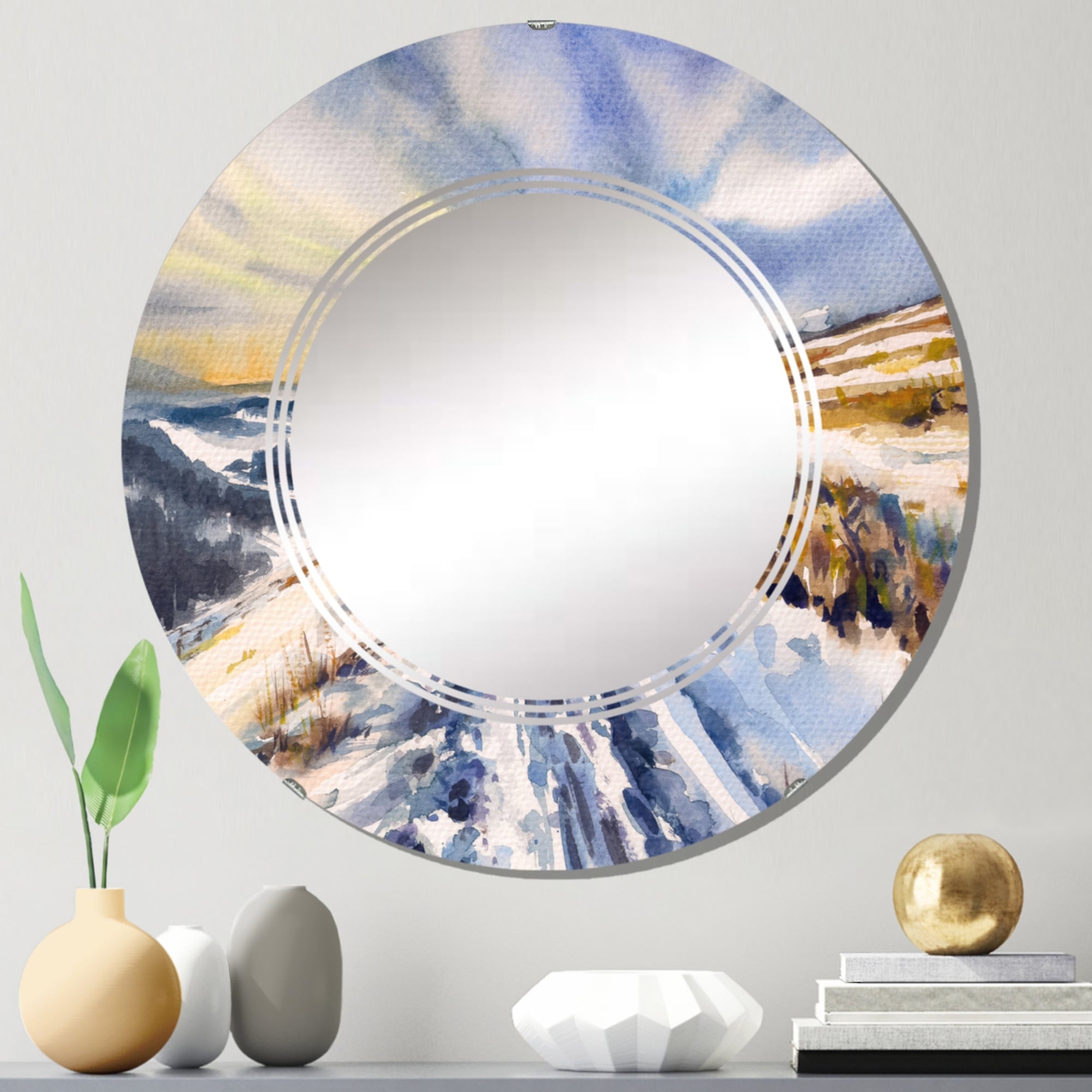 Designart 'Snowy Road Through Winter Landscape II' Printed Country Wall Mirror