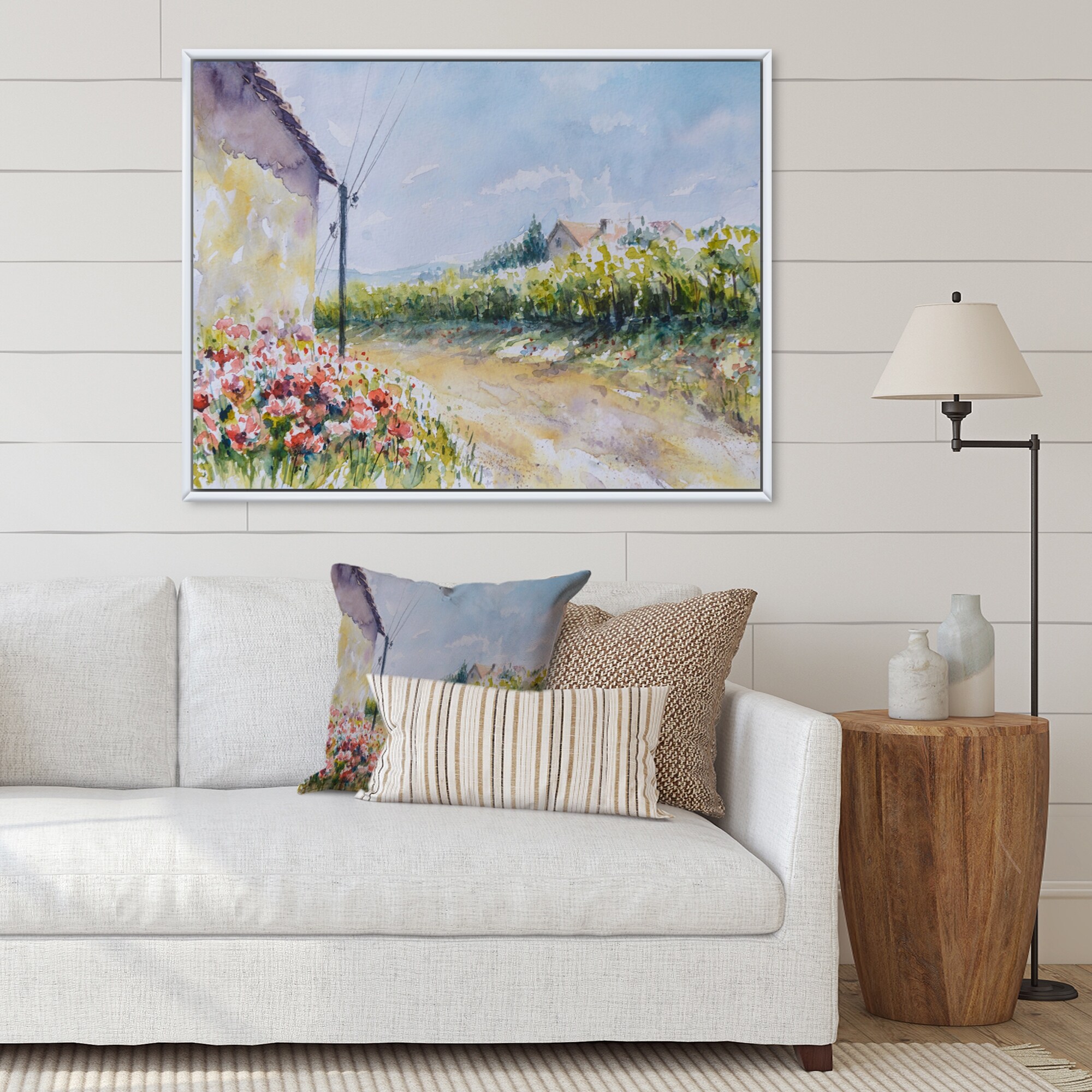 Designart "Poppy Flowers By A Countryside Road" Country Framed Canvas Wall Art Print