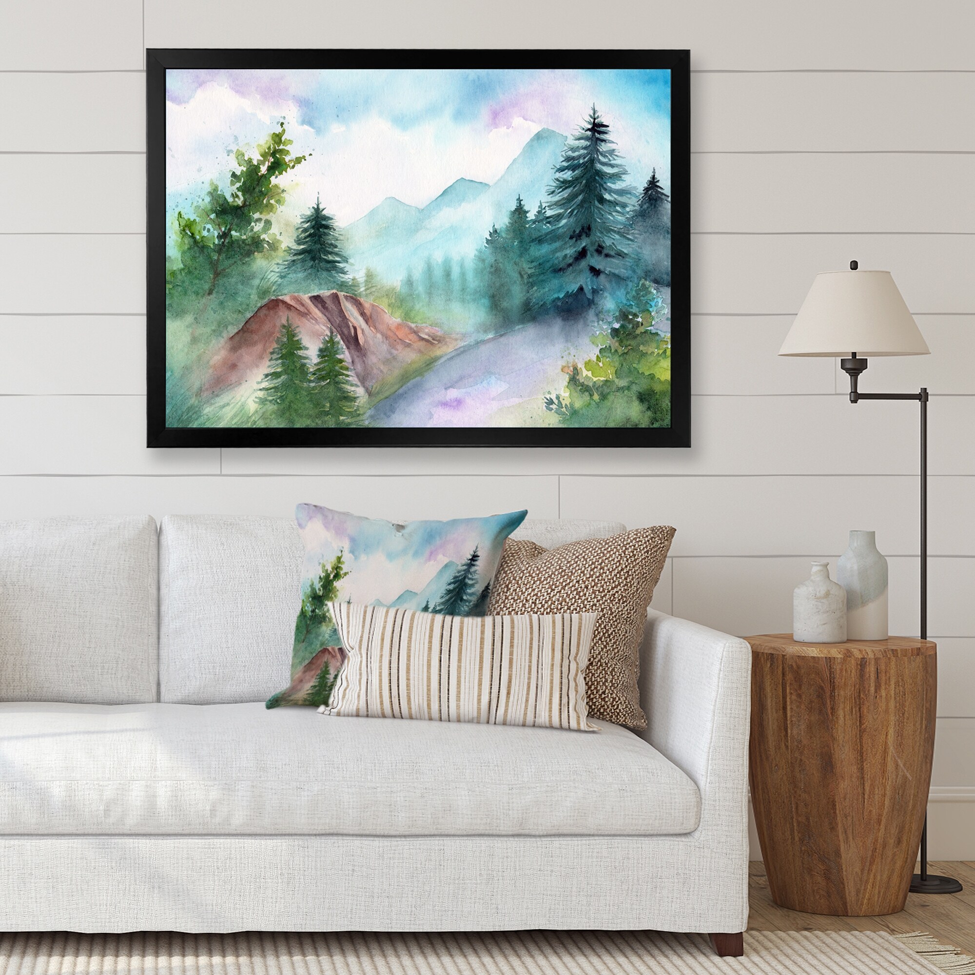 Designart "Landscape With Forest Road And Distant Mountains" Country Framed Art Print