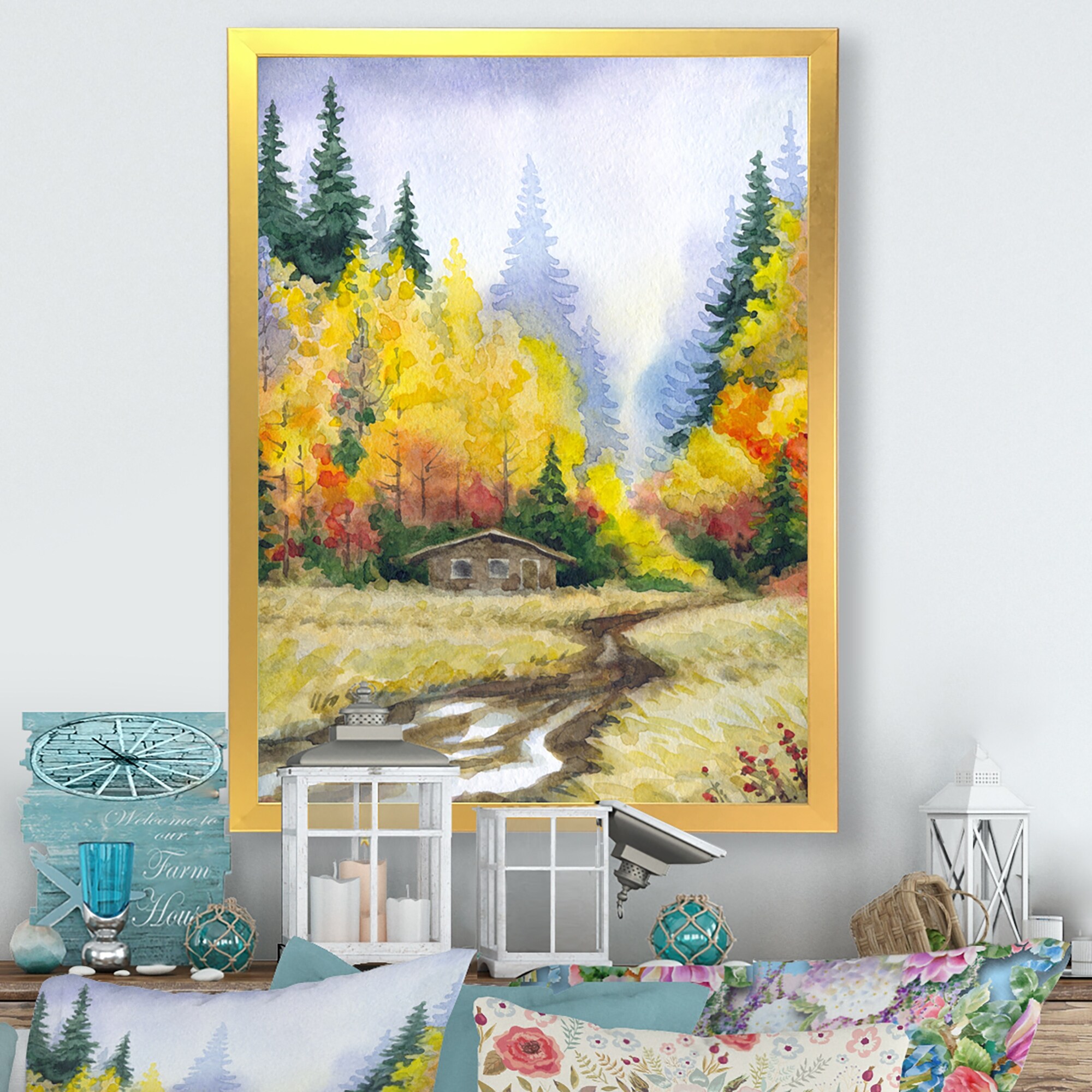 Designart "Road To Our Cottage in Autumn" Traditional Framed Art Print