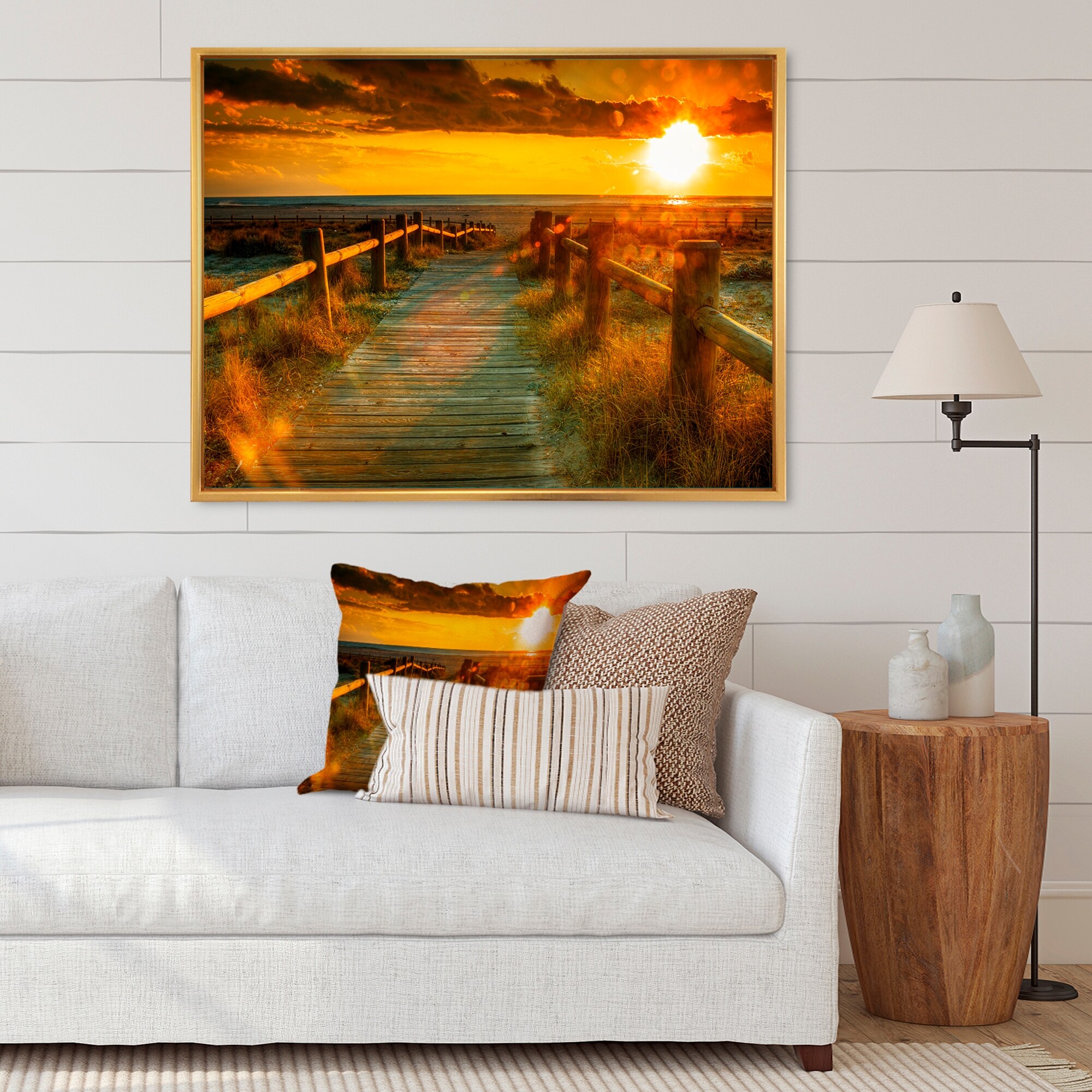 Designart "Little Road to the Beach During Sunset" Nautical & Coastal Framed Canvas Wall Art Print