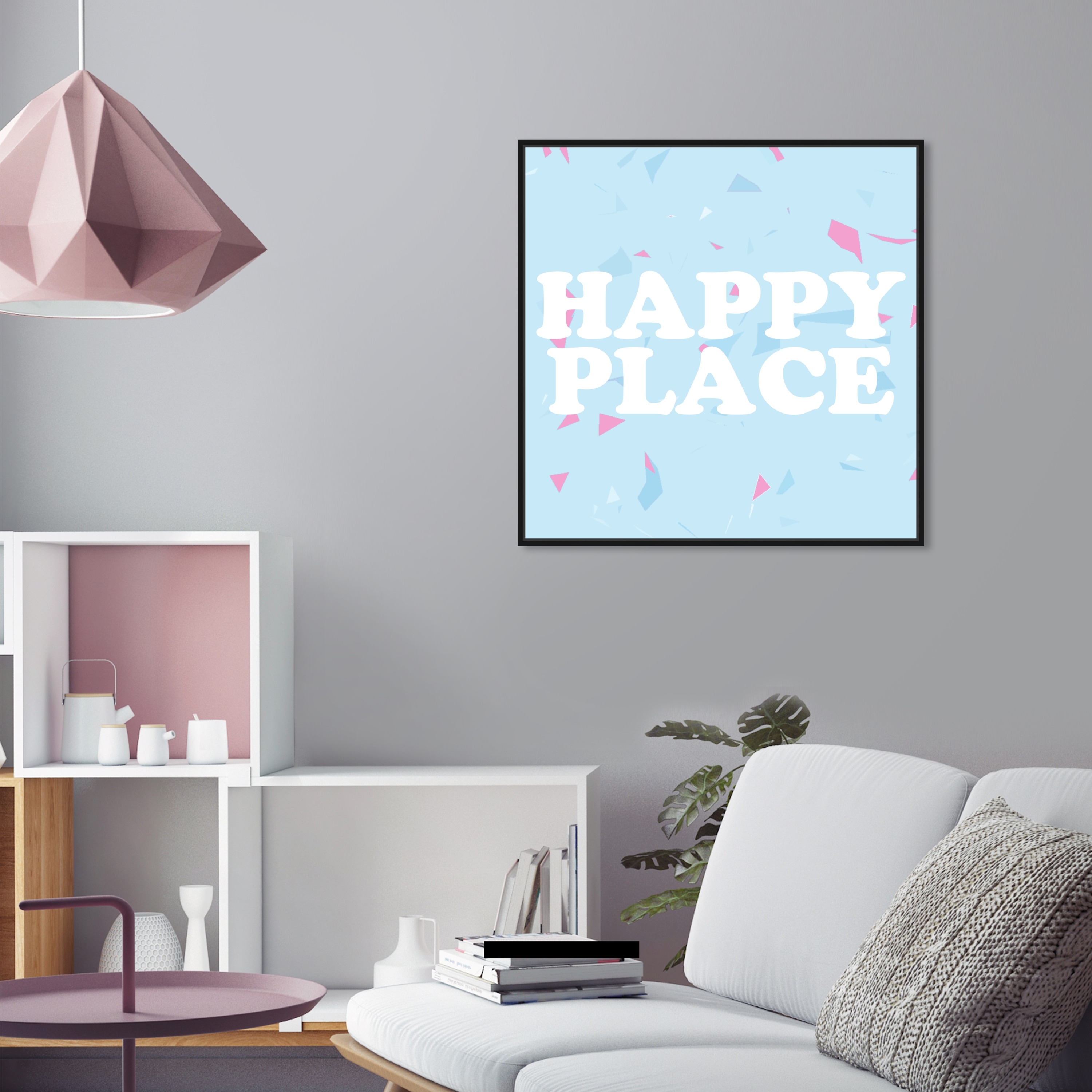 Oliver Gal 'Happy Place Confetti' Typography and Quotes Blue Wall Art Canvas Print