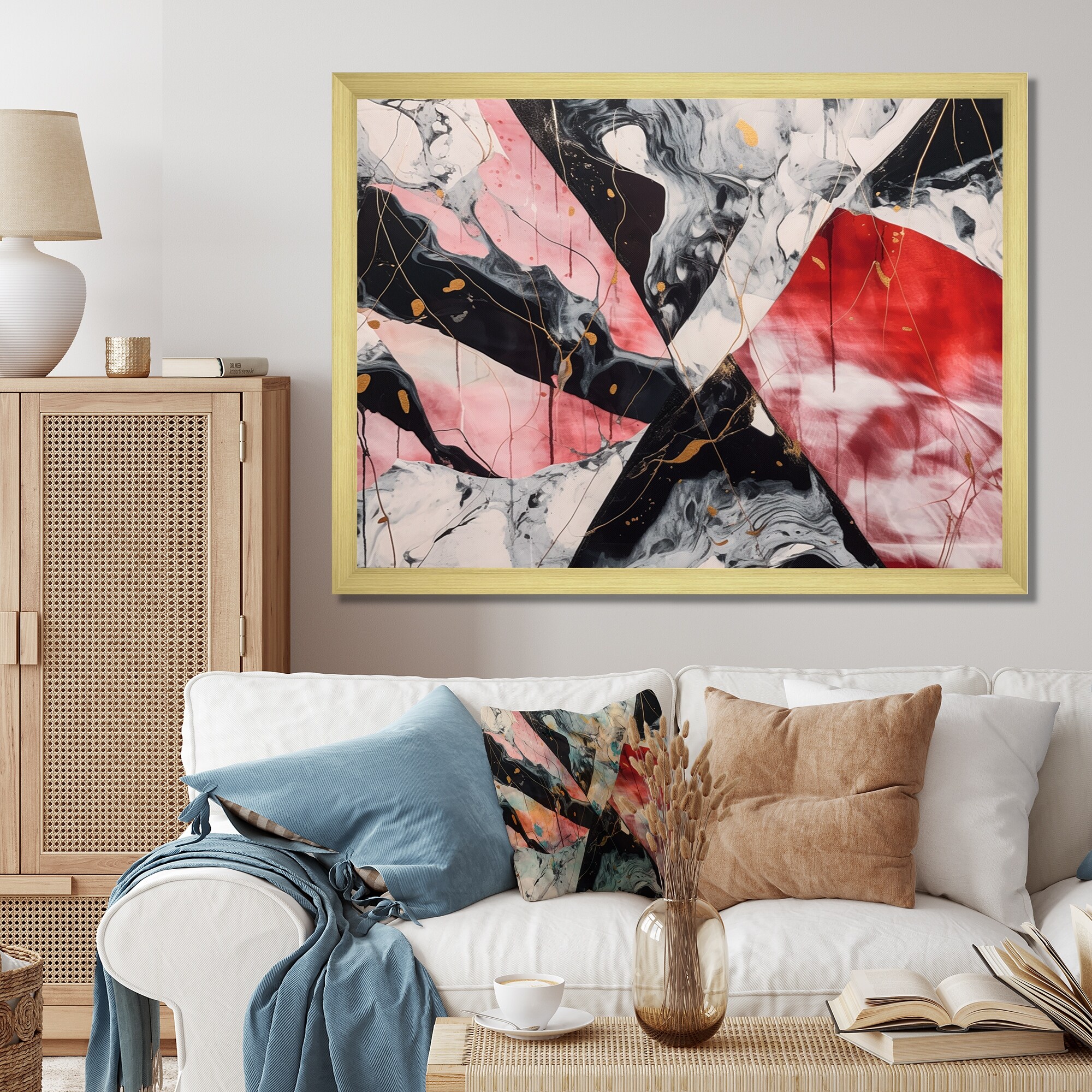 Designart "Red And Black Marble Whispers Ii" Abstract Marble Framed Wall Art Prints