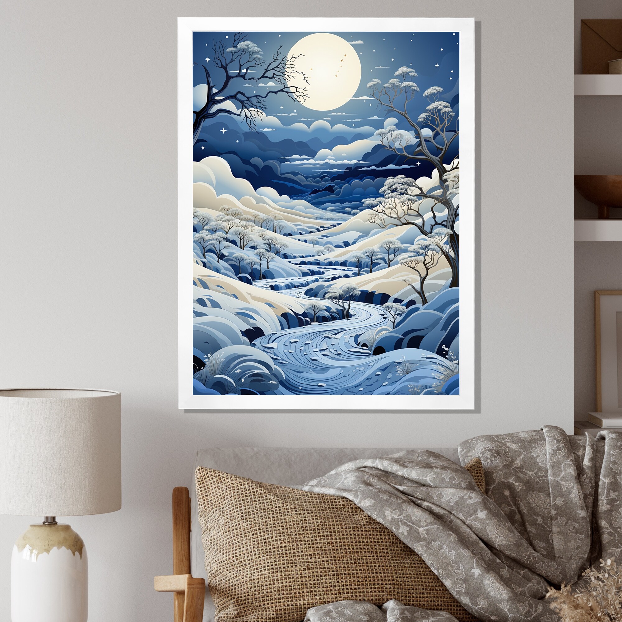 Designart "Snow Winters Moon Solitude I" Snow Framed Wall Decor