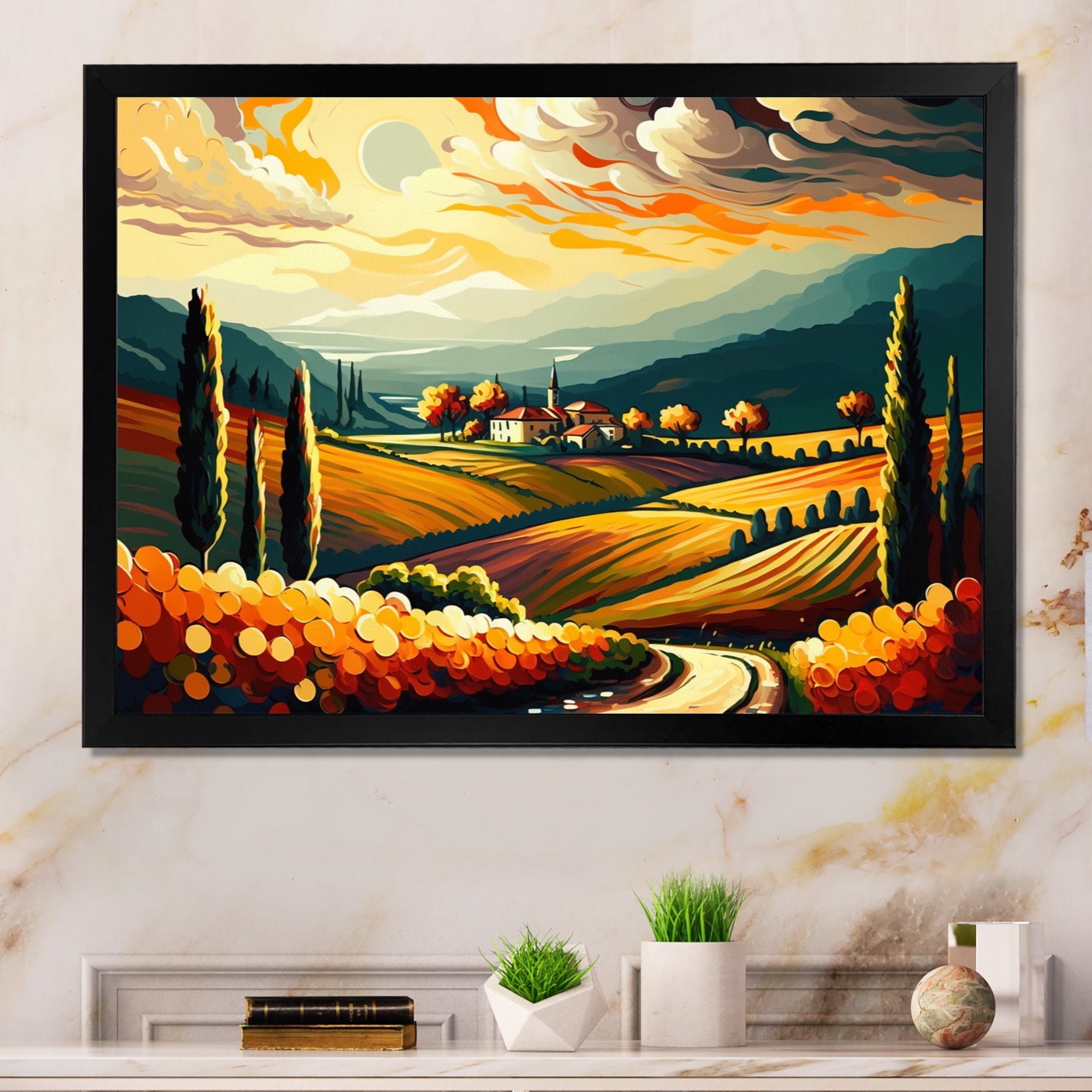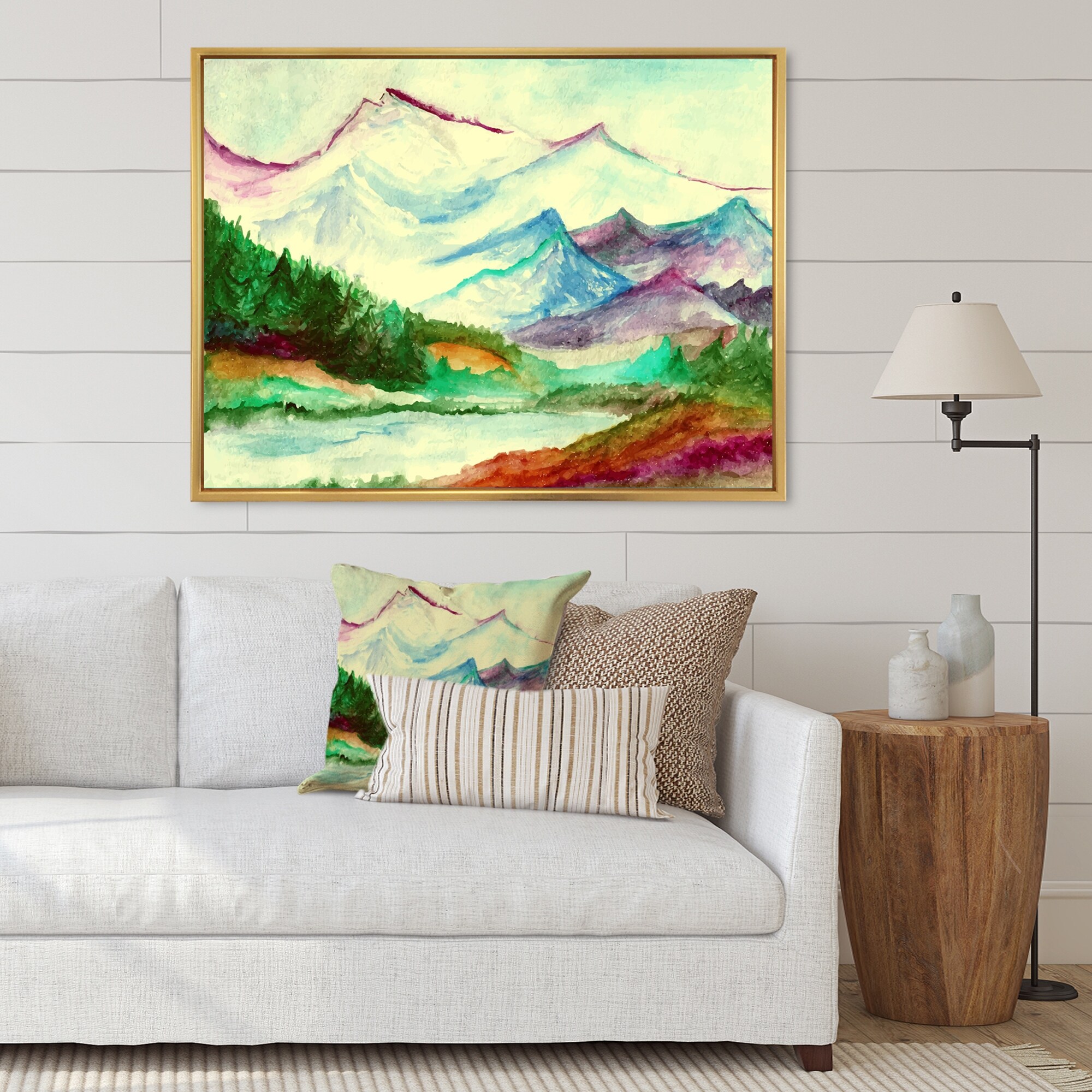 Designart "Landscape With Watercolor Mountains" Country Framed Canvas Wall Art Print