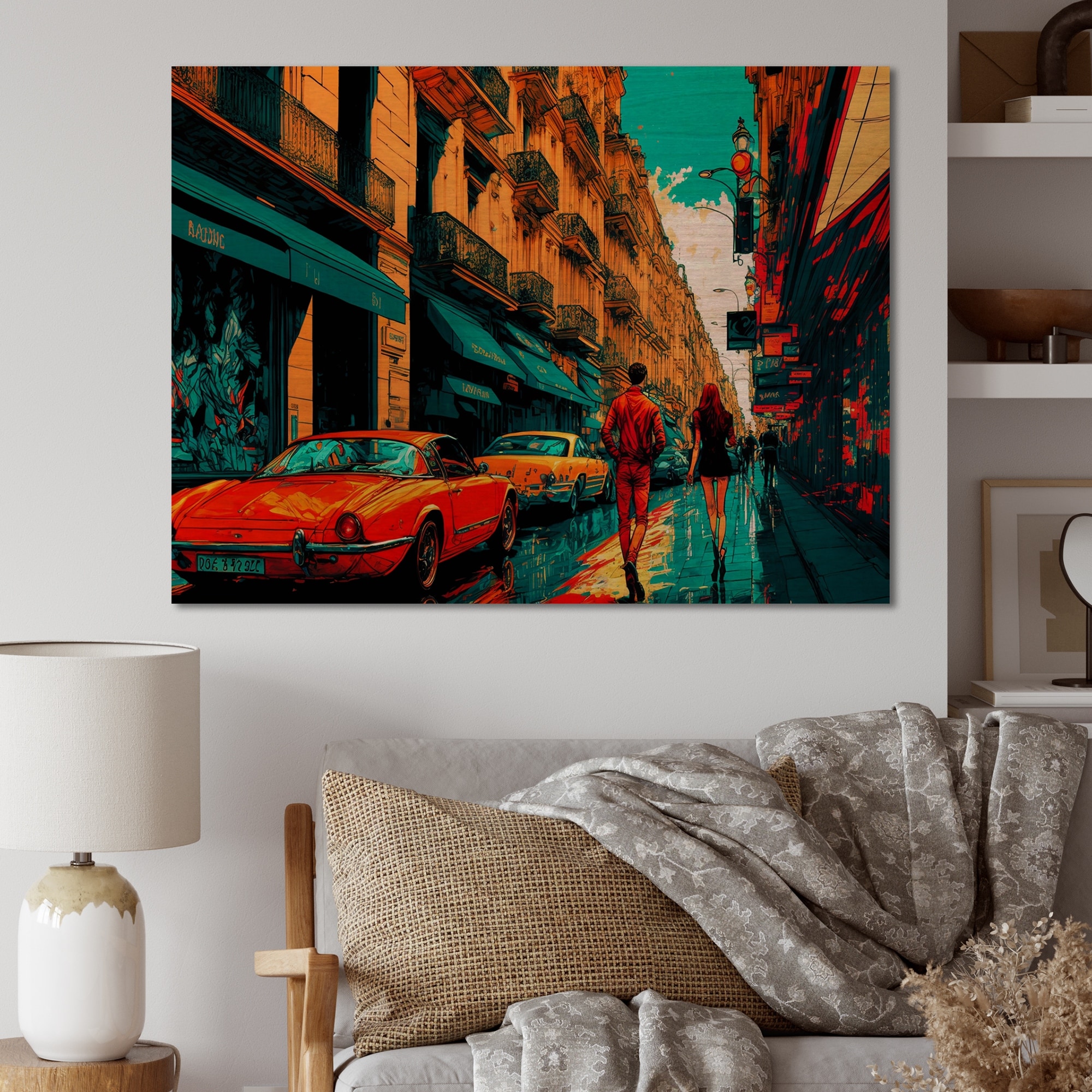 Designart 'Paris City Life in Retro Colours I' French Landscape Wood Wall Art - Natural Pine Wood