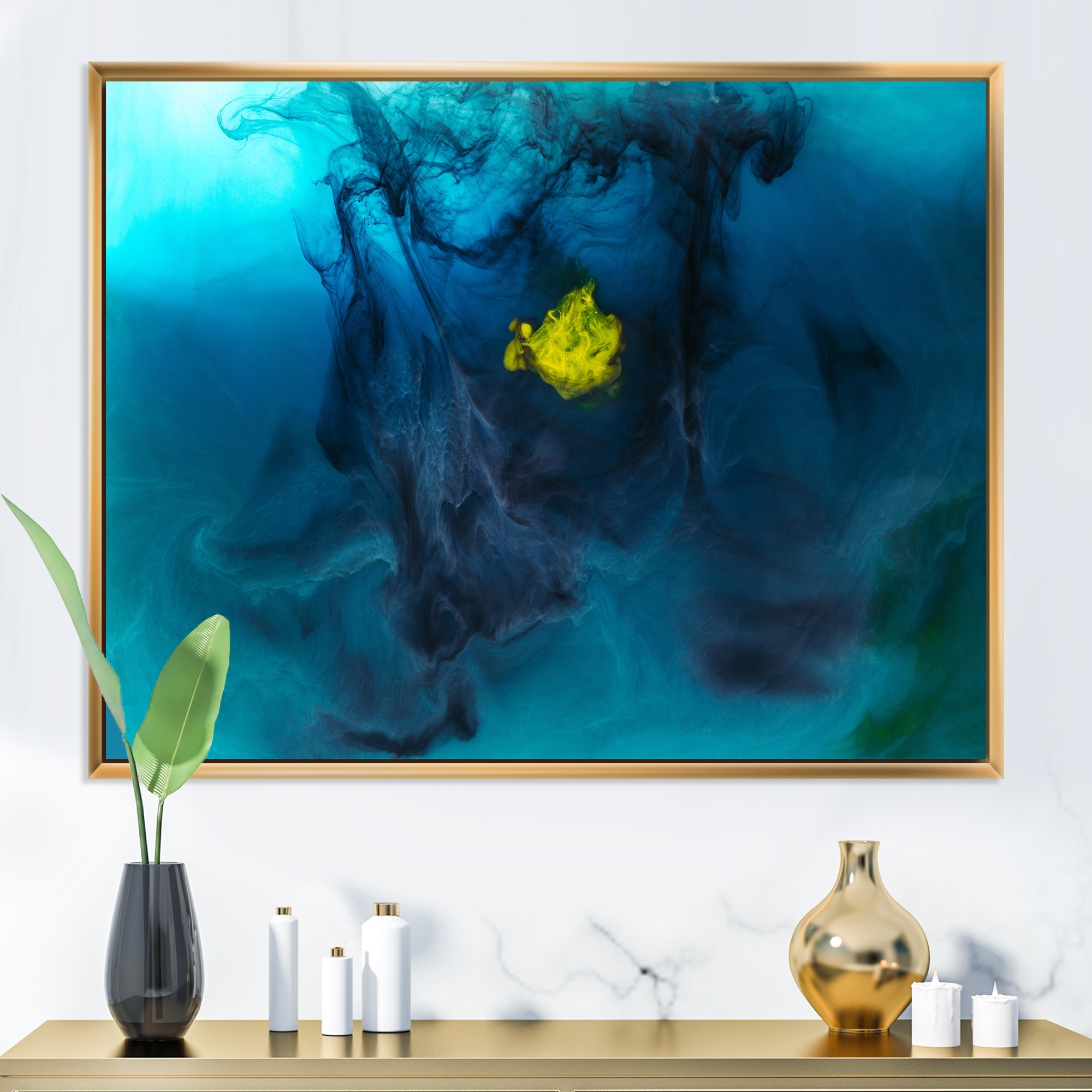 Designart "Blue Ink Mixing in Water II" Abstract Framed Canvas Wall Decor