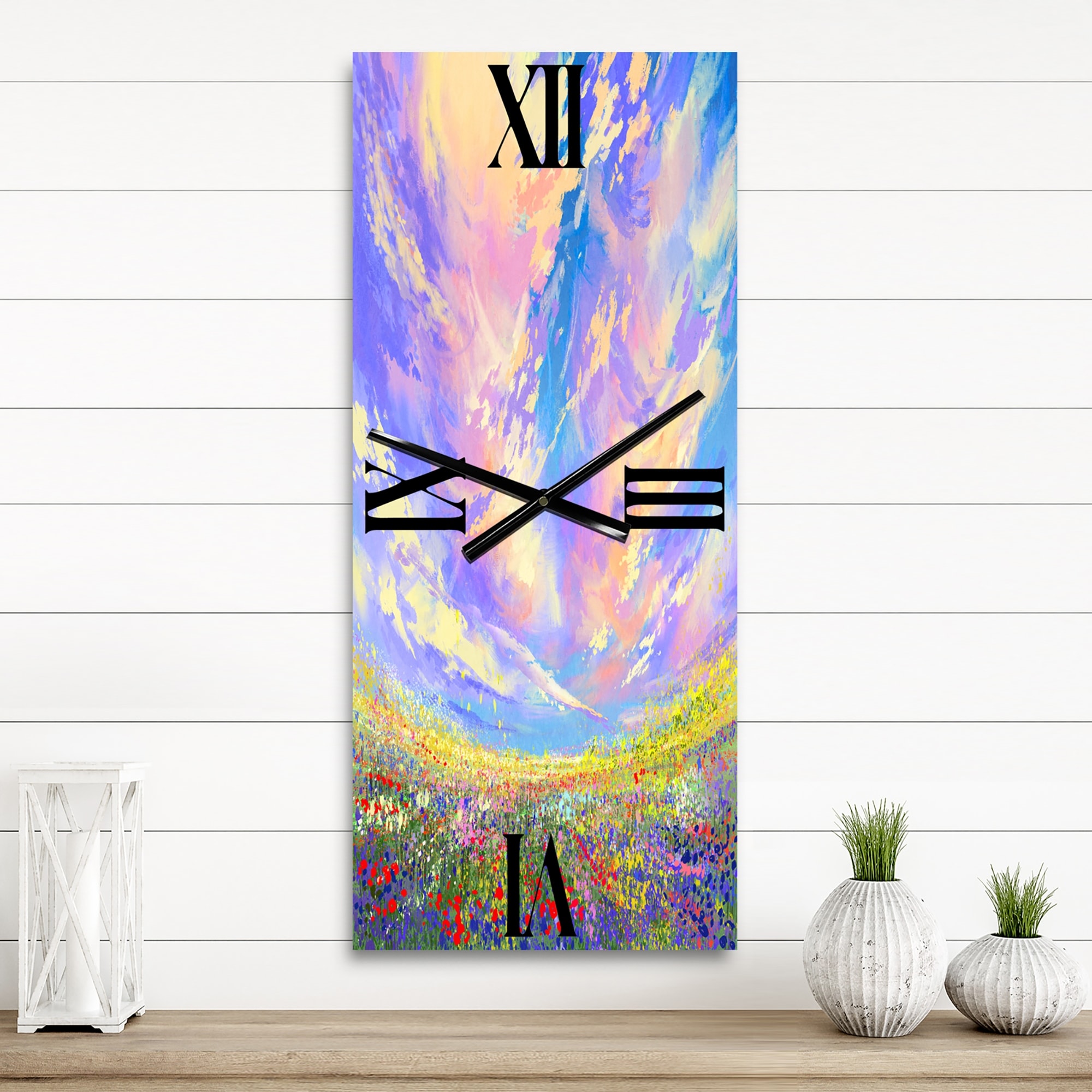 Designart 'Colorful Flowers in Field Under Gorgeous Clouds' Traditional Large Wall Clock
