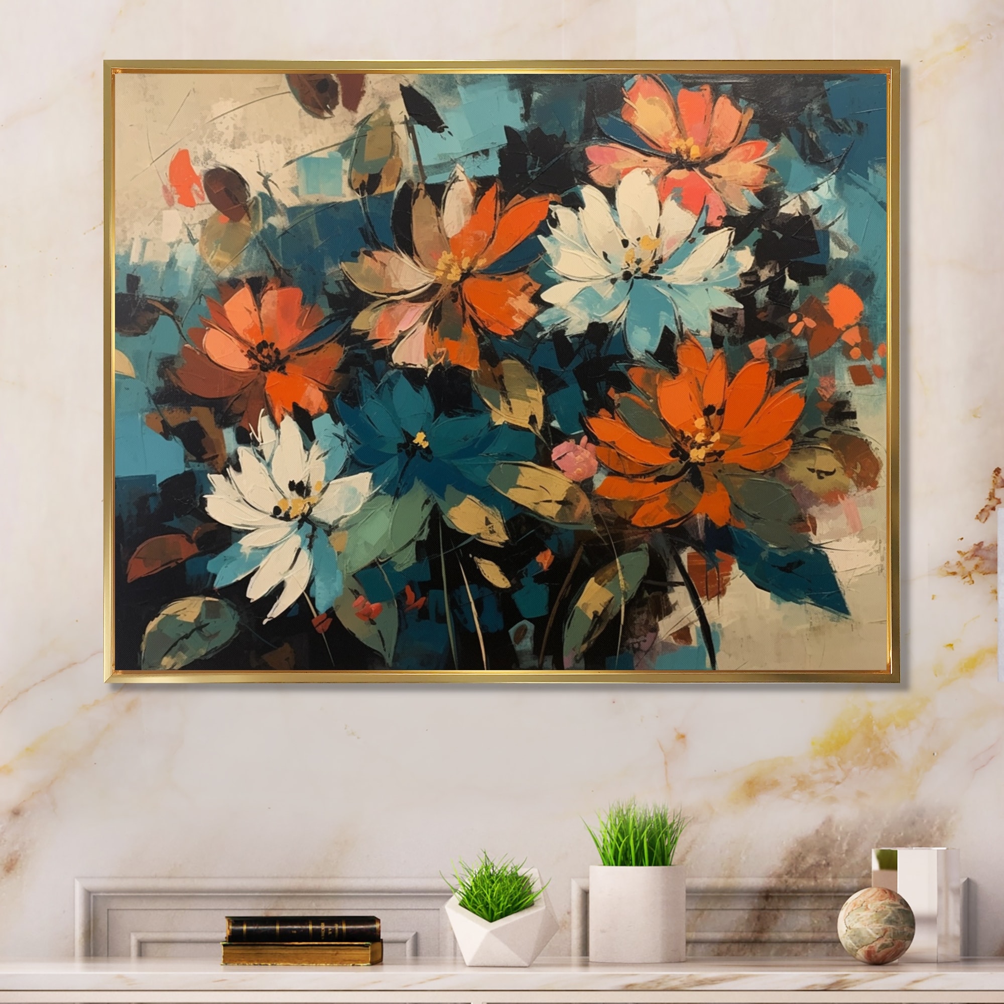 Designart "Orange Blue Daisy Tranquility I" Floral Daisy Framed Wall Decor
